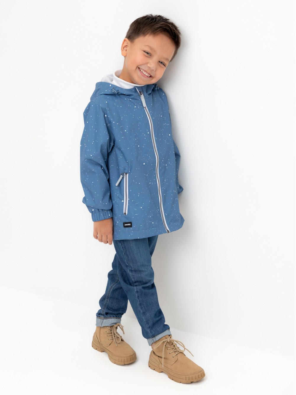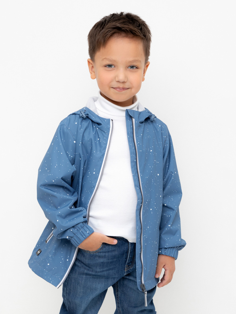 Ветровка для мальчика из мембранной ткани с дополнительной тефлоновой обработкой. Верхняя мембранная ткань 1000/1000 с тефлоновым покрытием отталкивает воду и грязь и обладает «дышащими» свойствами. Подкладка выполнена из сетки, 100% полиэстер. У изделия предусмотрена защита подбородка. Несъемный капюшон регулируется с помощью эластичного шнура со стопперами. Низ рукавов имеет эластичную резинку для лучшего прилегания. Во всех изделиях верхнего ассортимента для безопасности ребенка предусмотрены светоотражающие элементы.
