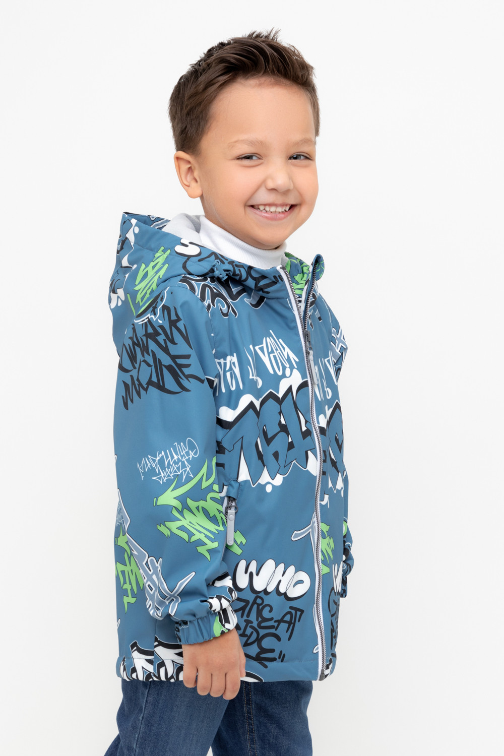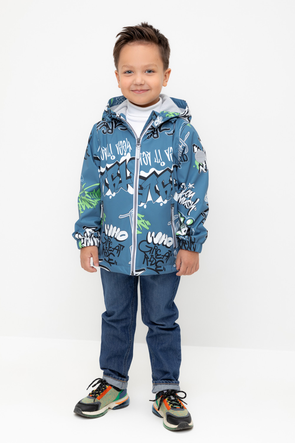 Ветровка для мальчика из мембранной ткани с дополнительной тефлоновой обработкой. Верхняя мембранная ткань 1000/1000 с тефлоновым покрытием отталкивает воду и грязь и обладает «дышащими» свойствами. Подкладка выполнена из флиса, 100% полиэстер. У изделия предусмотрена защита подбородка. Несъемный капюшон регулируется с помощью эластичного шнура со стопперами. Низ рукавов имеет эластичную резинку для лучшего прилегания. Во всех изделиях верхнего ассортимента для безопасности ребенка предусмотрены светоотражающие элементы.
