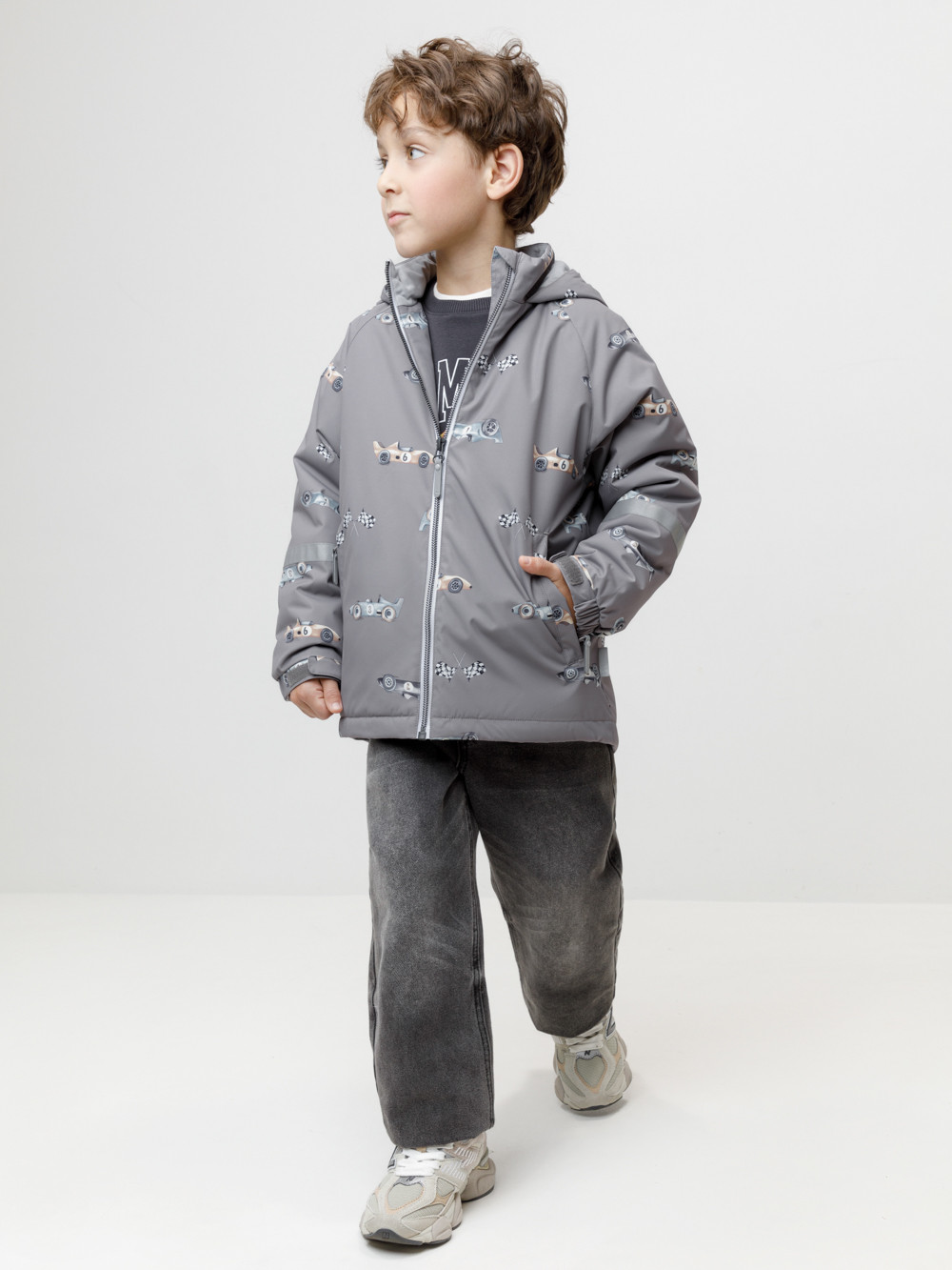 Демисезонная куртка для мальчика с утеплителем SEE®: 120 г/м2. Выполнена из мембранной ткани с тефлоновой обработкой. Данный вид обработки предохраняет изделие от загрязнения и хорошо отталкивает влагу. Подклад выполнен из трикотажа в размерах 86-92 и 92-98 и из 100% полиэстера в размерах от 98-104 до 116-122. Куртка застёгивается на молнию, предусмотрена защита подбородка. Несъёмный капюшон имеет эластичные утяжки по бокам. Низ рукавов на эластичной резинке регулируется с помощью липучек для лучшего прилегания. По низу изделия эластичная утяжка со стопперами. По бокам два кармана на молниях. Во всех изделиях верхнего ассортимента для безопасности ребёнка предусмотрены светоотражающие элементы.