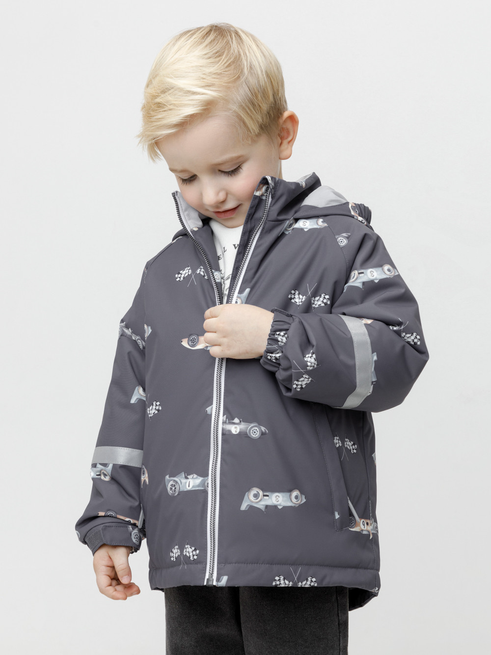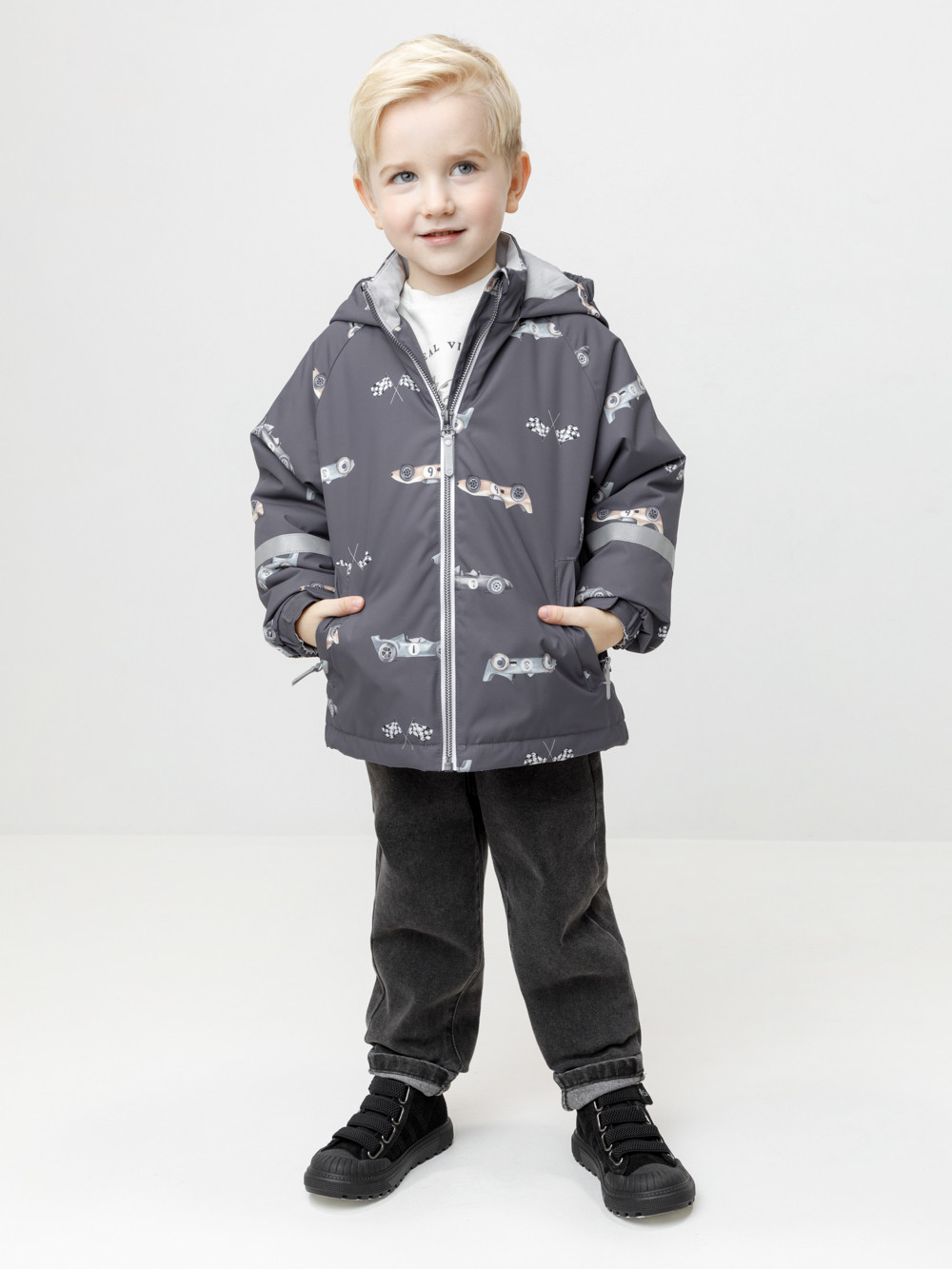 Демисезонная куртка для мальчика с утеплителем SEE®: 120 г/м2. Выполнена из мембранной ткани с тефлоновой обработкой. Данный вид обработки предохраняет изделие от загрязнения и хорошо отталкивает влагу. Подклад выполнен из трикотажа в размерах 86-92 и 92-98 и из 100% полиэстера в размерах от 98-104 до 116-122. Куртка застёгивается на молнию, предусмотрена защита подбородка. Несъёмный капюшон имеет эластичные утяжки по бокам. Низ рукавов на эластичной резинке регулируется с помощью липучек для лучшего прилегания. По низу изделия эластичная утяжка со стопперами. По бокам два кармана на молниях. Во всех изделиях верхнего ассортимента для безопасности ребёнка предусмотрены светоотражающие элементы.
