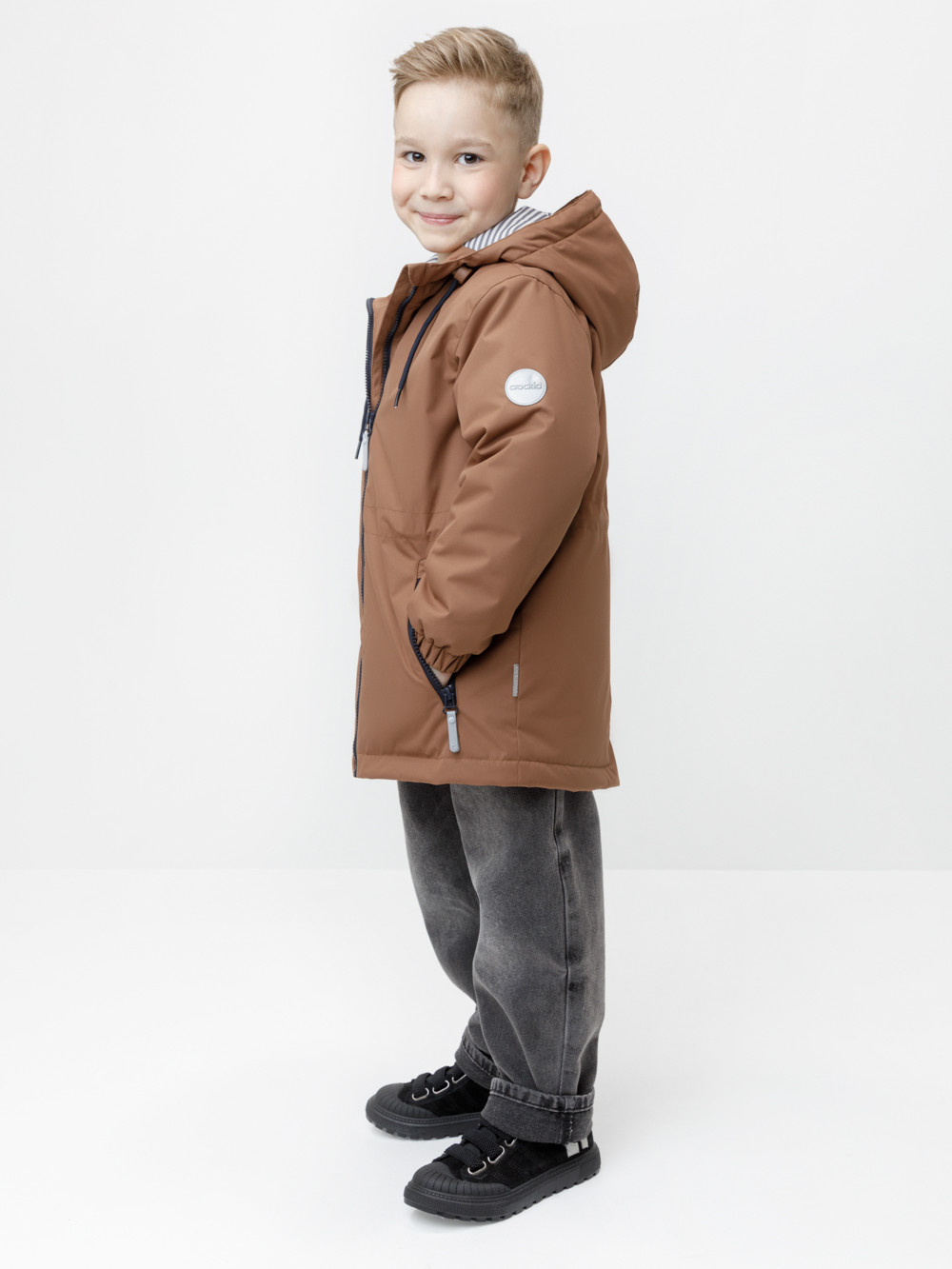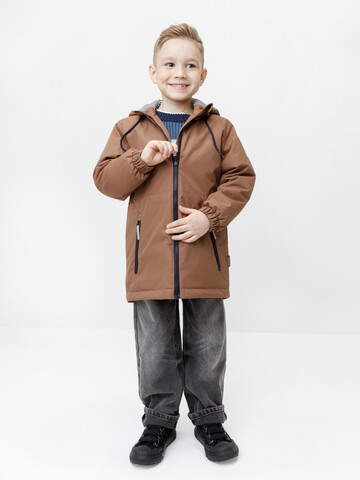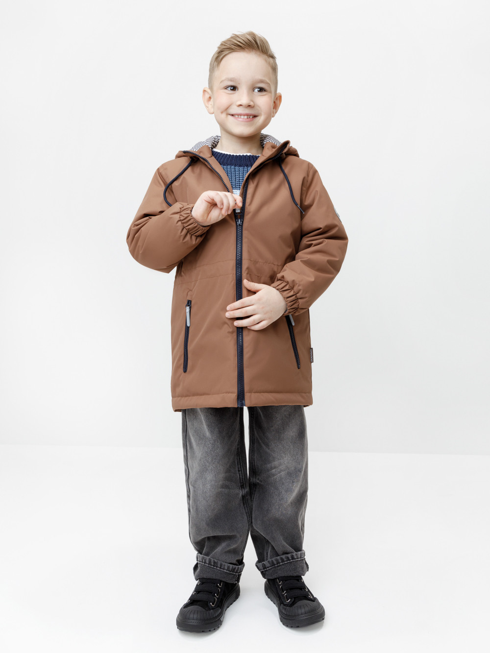 Демисезонная куртка для мальчика с утеплителем SEE, 120 г/м2. Выполнена из мембранной ткани с тефлоновой обработкой. Данный вид обработки предохраняет изделие от загрязнения и хорошо отталкивает влагу. Подклад выполнен из 100% полиэстера. Куртка застёгивается на молнию, предусмотрена защита подбородка. Несъёмный капюшон имеет утяжку на шнур со стопперами по бокам. Низ рукавов на эластичной резинке. По талии эластичная утяжка со стопперами. По бокам два кармана на молниях. Во всех изделиях верхнего ассортимента для безопасности ребёнка предусмотрены светоотражающие элементы.