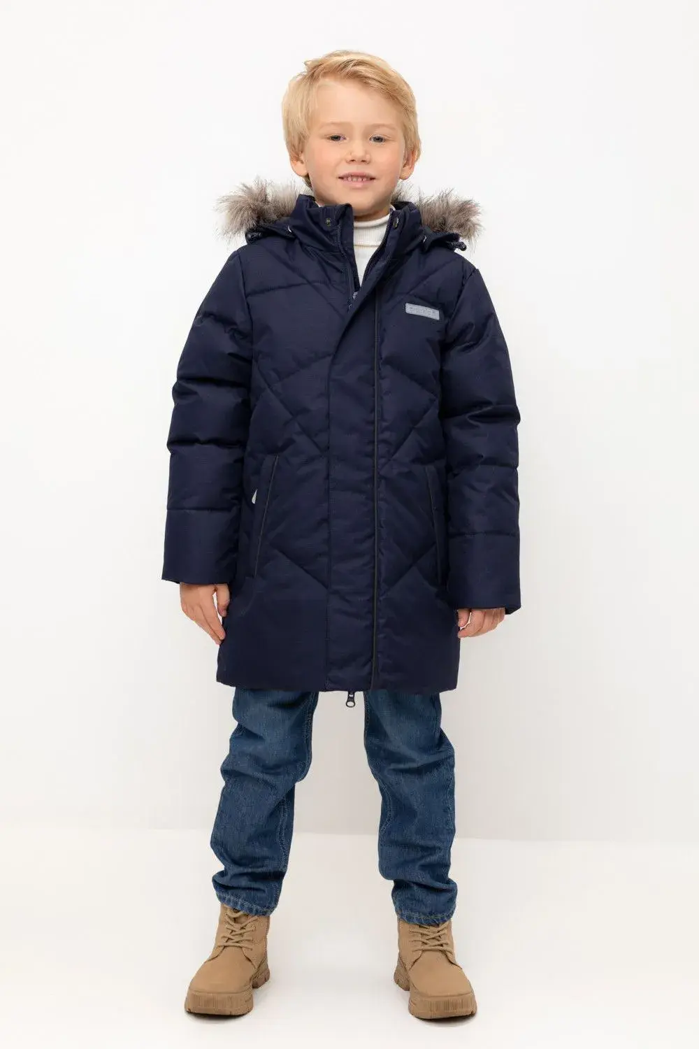 Стёганая куртка для мальчика с утеплителем из гусиного пуха (70%) и пера (30%). Рекомендованный температурный режим - от -5° до -30°. Мембранная ткань 1000/1000 с тефлоновым покрытием отталкивает воду и грязь и обладает "дышащими" свойствами. Подкладка из гладкого полиэстера упрощает процесс одевания. Трикотажные манжеты в рукавах защищают от ветра и попадания осадков. С помощью эластичной резинки по низу изделия можно отрегулировать ширину куртки. Светоотражающие элементы обеспечат дополнительную безопасность в тёмное время суток. Капюшон отстёгивается, меховая опушка снимается. По бокам - два кармана на молнии.