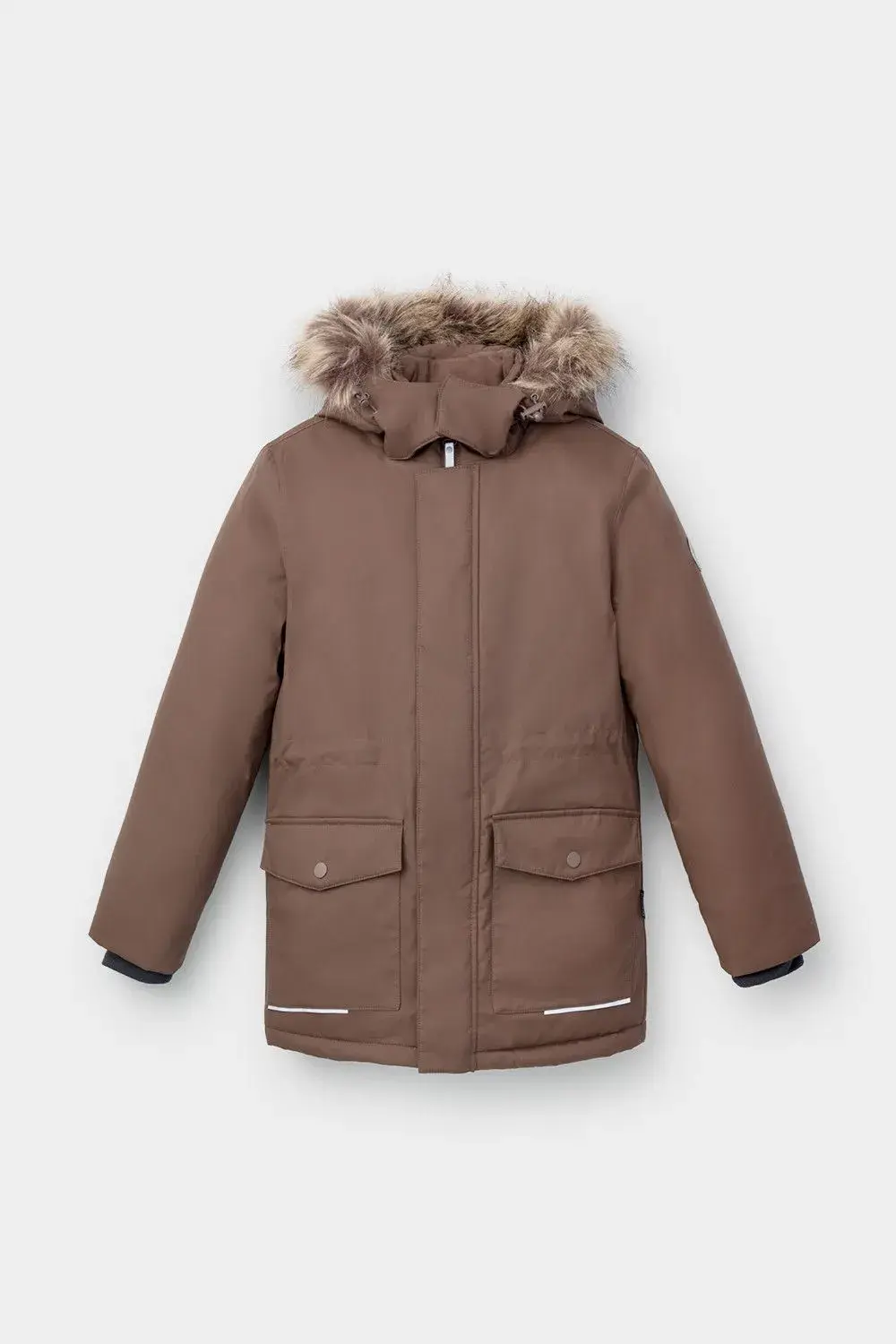 • Съемный капюшон на пилучках с отстегивающимся искусственным мехом