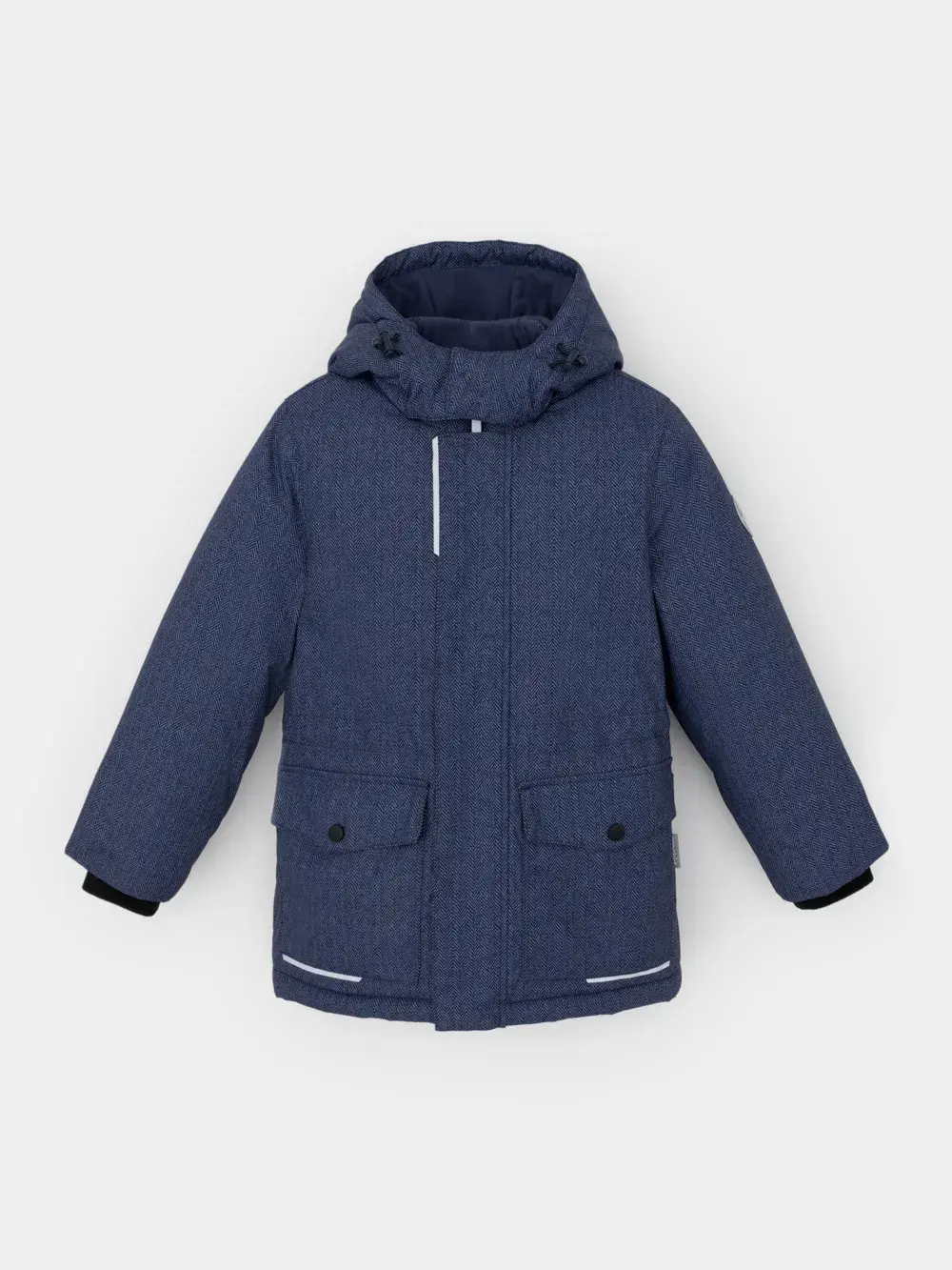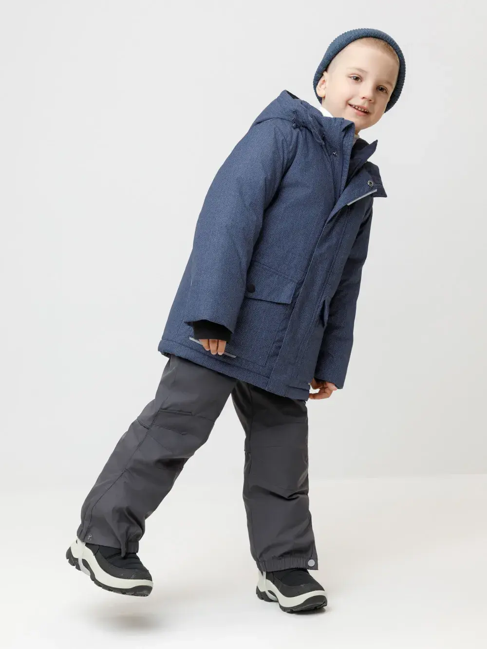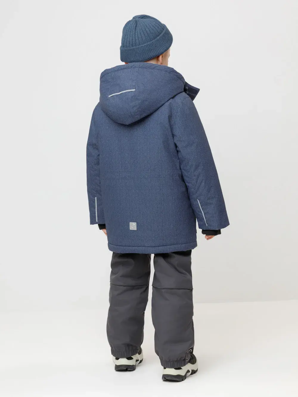 Зимняя куртка для мальчика с утеплителем SEE®: 300 г/м2. Выполнена из мембранной ткани с дополнительной тефлоновой обработкой, которая предохраняет изделие от загрязнений и отталкивает влагу. Подклад выполнен из 100% полиэстера Tricot. Куртка застёгивается на молнию и внешнюю планку с магнитными кнопками, предусмотрена защита подбородка. Съёмный капюшон на кнопках и липучках имеет эластичную утяжку со стопперами. На рукавах внутренние эластичные манжеты. Два накладных кармана с клапанами по бокам. По талии эластичная утяжка со стопперами. Во всех изделиях верхнего ассортимента для безопасности ребёнка предусмотрены светоотражающие элементы.
