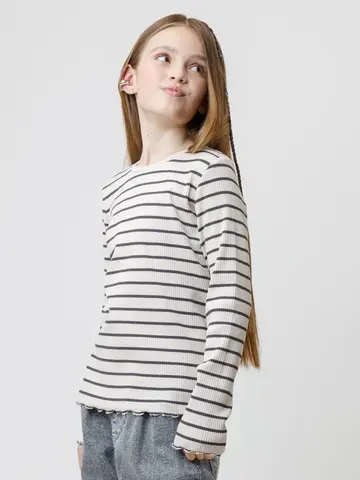 лонгслив для девочки КР 302820/молочный,тем.серый,полоска к623