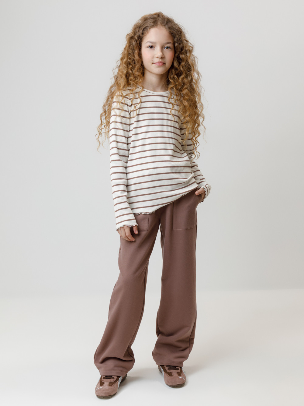 лонгслив для девочки КР 302820/сахар,капучино,полоска к633