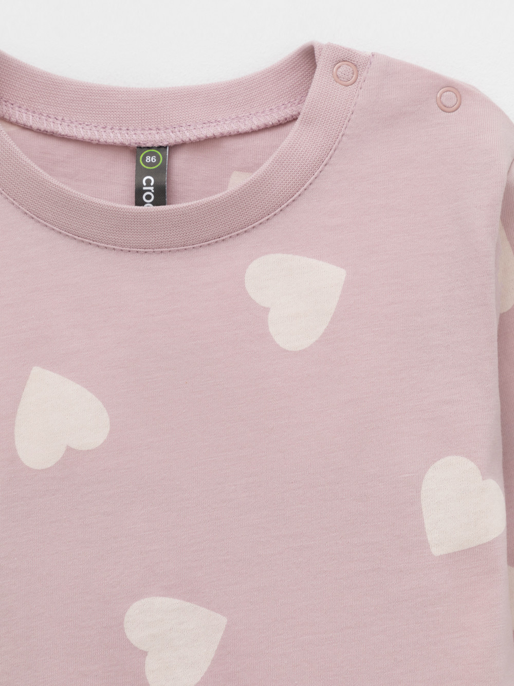 лонгслив для девочки КР 302829/розовый лед,сердечки к597