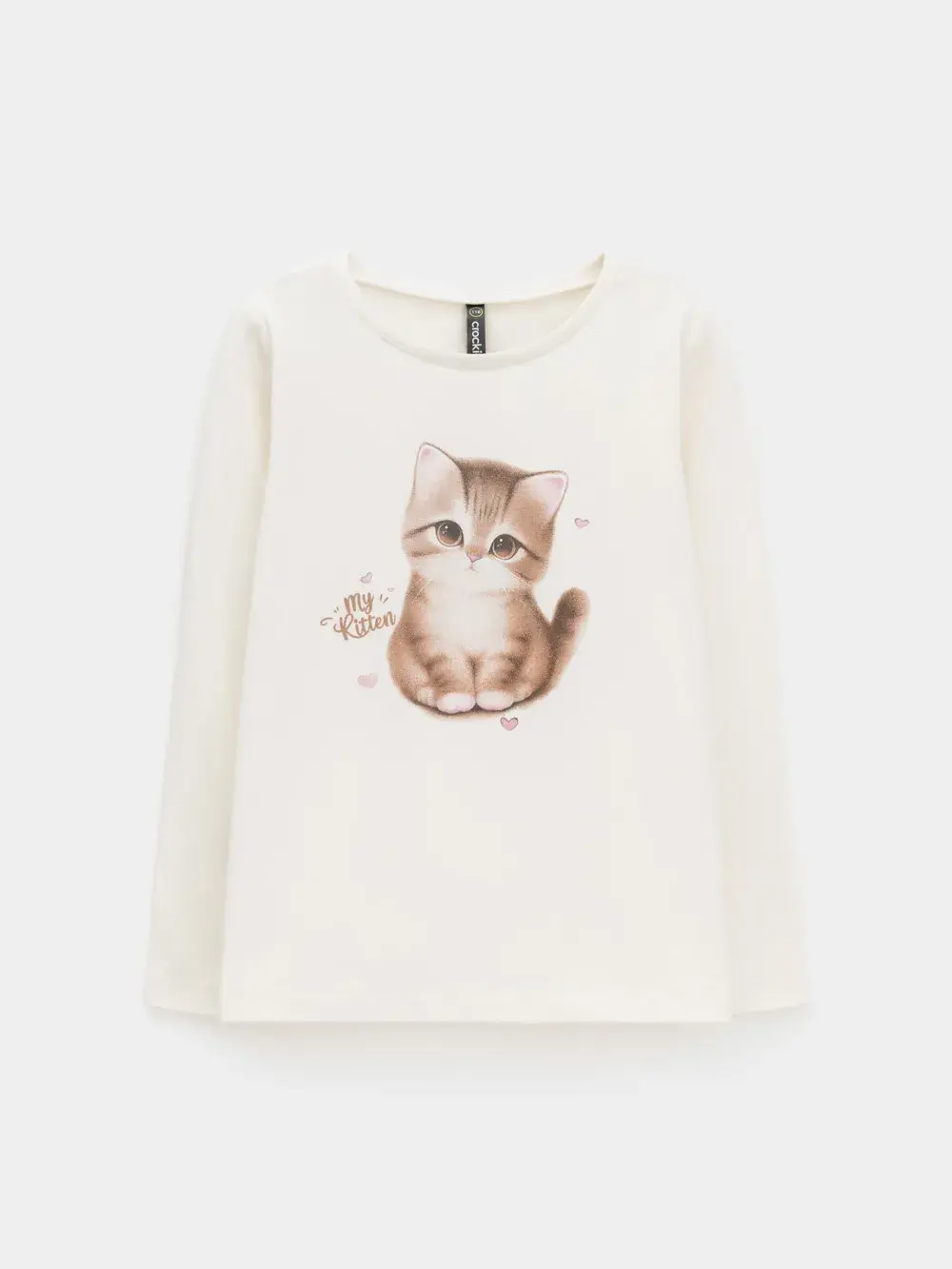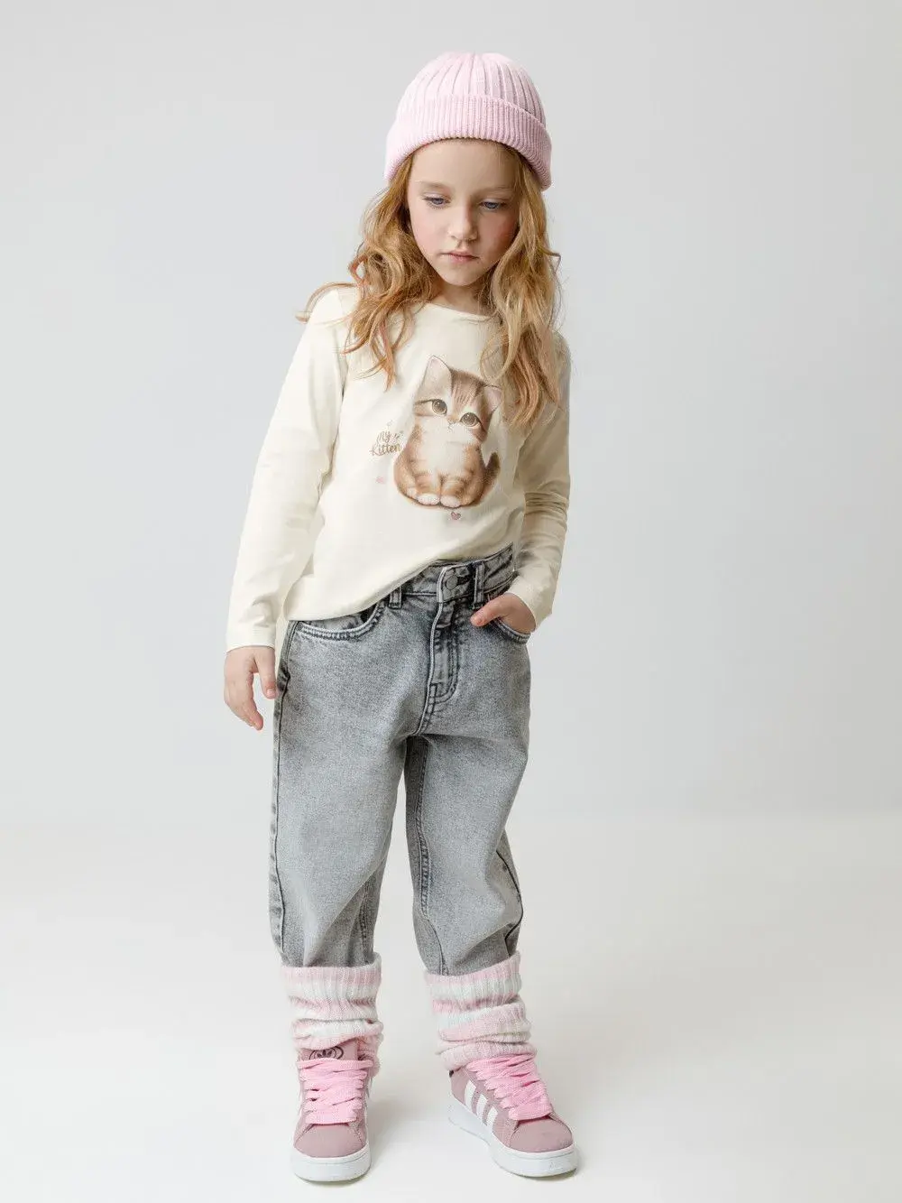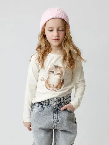 Лонгслив для девочки из гладкого эластичного трикотажа. В 92 и 98 размерах для удобства при одевании застёгивается на кнопки. Оригинальный принт выполнен из стойких текстильных гипоаллергенных красителей. Изделие сохраняет цвет и форму после многократных стирок. Все трикотажные полотна производятся в соответствии с нормами швейцарского сертификата ЭкоТекс.