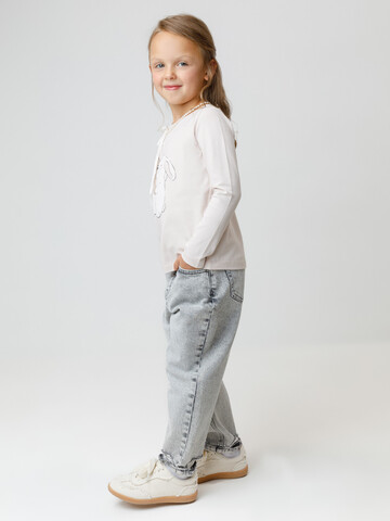 Лонгслив для девочки из гладкого трикотажа, произведённого из высококачественного натурального хлопка. Застёгивается на плече кнопки в размерах 92 и 98. Оригинальный принт выполнен из стойких текстильных гипоаллергенных красителей. Изделие сохраняет цвет и форму после многократных стирок. Все трикотажные полотна производятся в соответствии с нормами швейцарского сертификата ЭкоТекс.