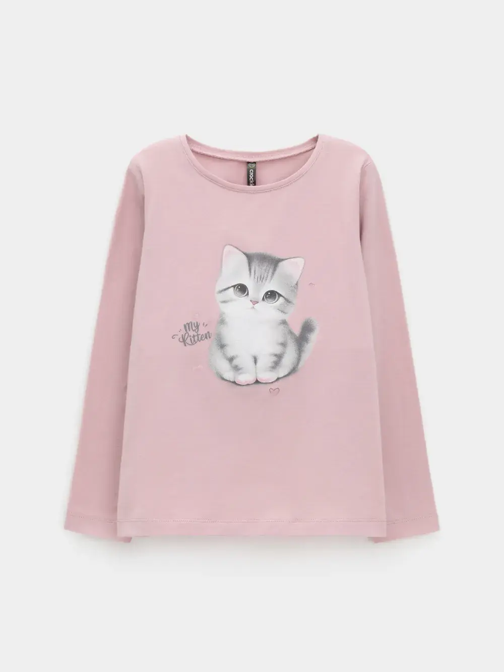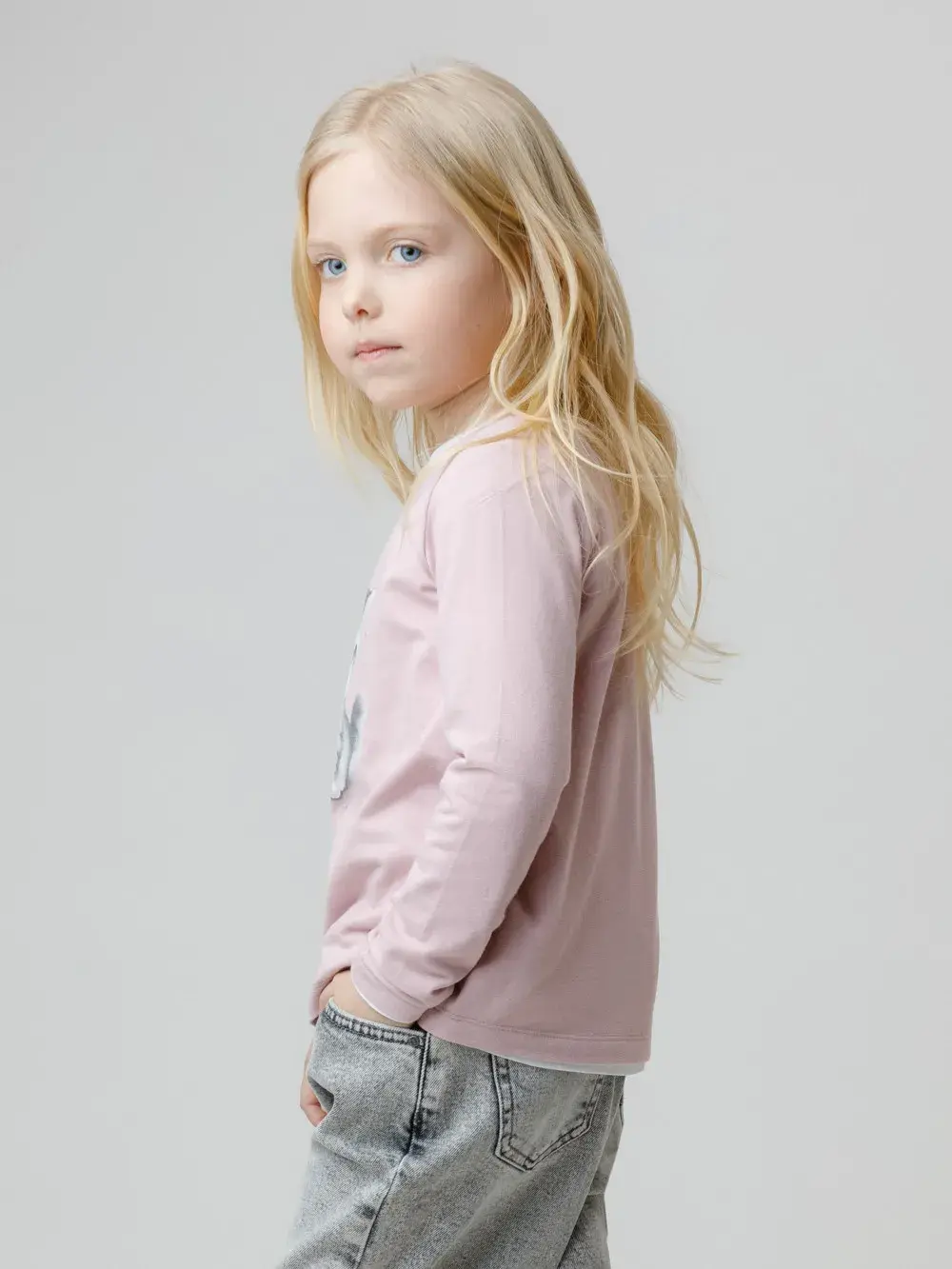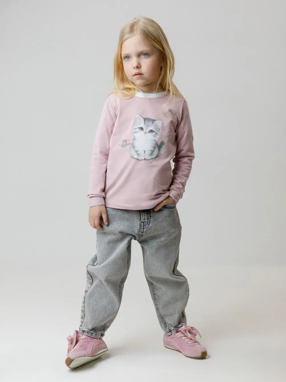 Лонгслив для девочки из гладкого эластичного трикотажа. В 92 и 98 размерах для удобства при одевании застёгивается на кнопки. Оригинальный принт выполнен из стойких текстильных гипоаллергенных красителей. Изделие сохраняет цвет и форму после многократных стирок. Все трикотажные полотна производятся в соответствии с нормами швейцарского сертификата ЭкоТекс.