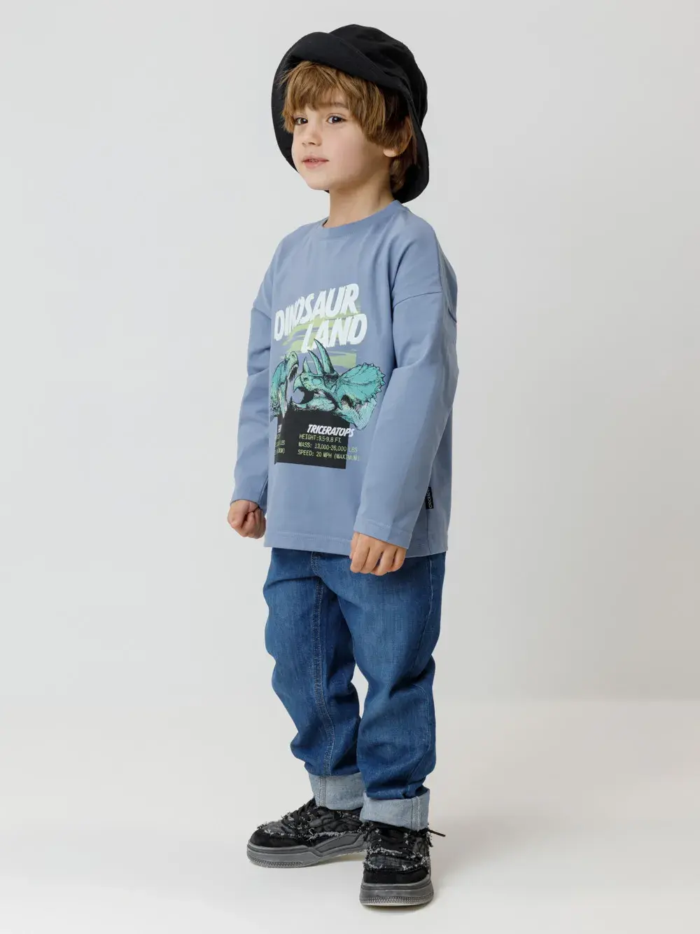 Лонгслив для мальчика из гладкого трикотажа, произведённого из высококачественного натурального хлопка. Для удобства одевания имеется застёжка на кнопки в размерах 92 и 98. Оригинальный принт выполнен из стойких текстильных гипоаллергенных красителей. Изделие сохраняет цвет и форму после многократных стирок. Все трикотажные полотна производятся в соответствии с нормами швейцарского сертификата ЭкоТекс.