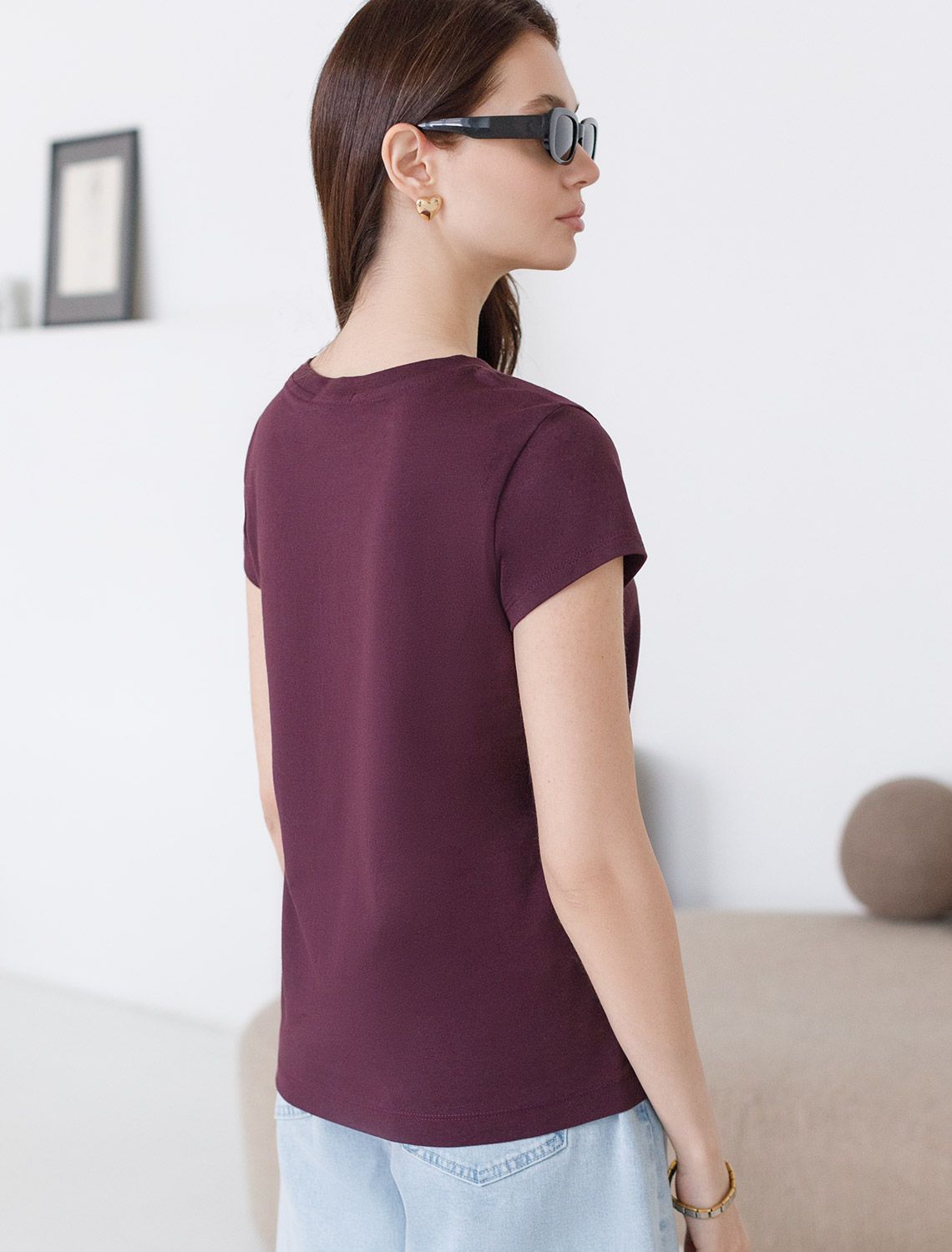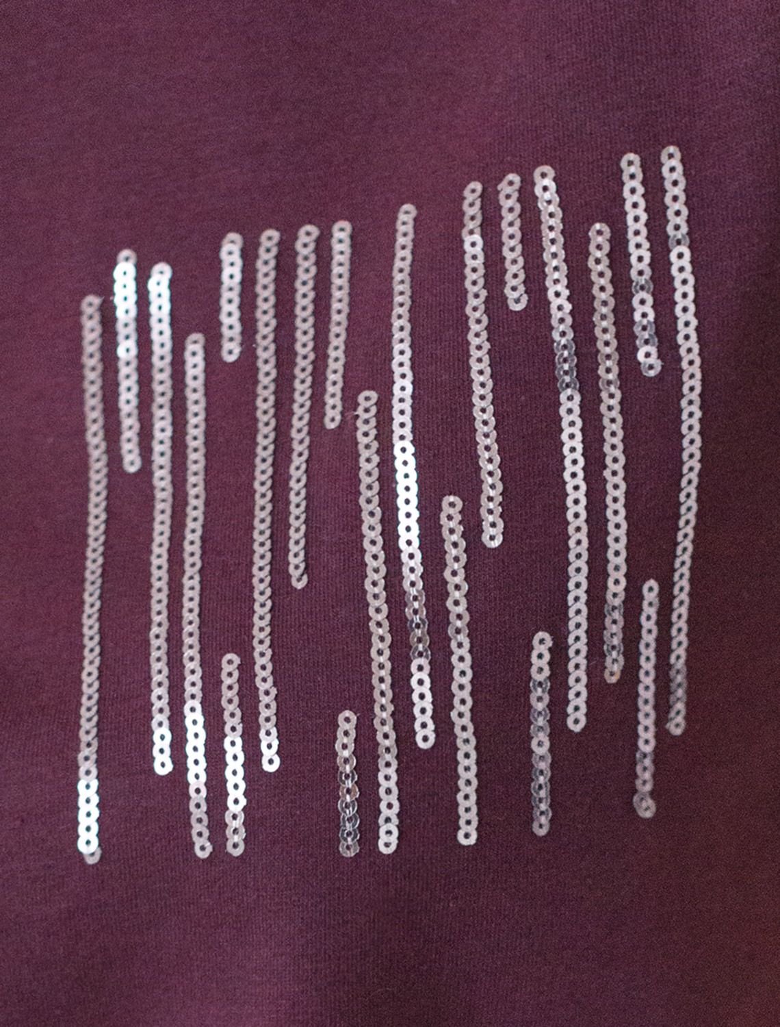 Футболка цвета бургунди идеально подходит для вечеринки и создания яркого образа. Оригинальный принт из серебристых пайеток придает изделию шикарный вид, который привлечет внимание на любом мероприятии. Модель с круглым вырезом и классическим коротким рукавом обеспечивает свободу движений и комфорт в носке. Такой фасон изделия подходит на большие размеры, гармонично сидит на фигуре и помогает создать легкий акцент на достоинствах. Аккуратный круглый вырез красиво подчеркивает шею и делает образ элегантным, сохраняя актуальность для разных случаев — от рабочих встреч до вечерних прогулок и праздничных мероприятий.