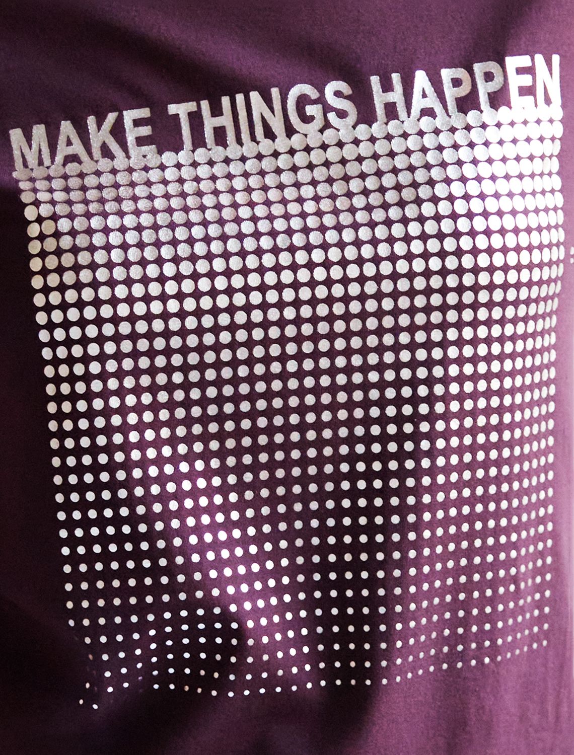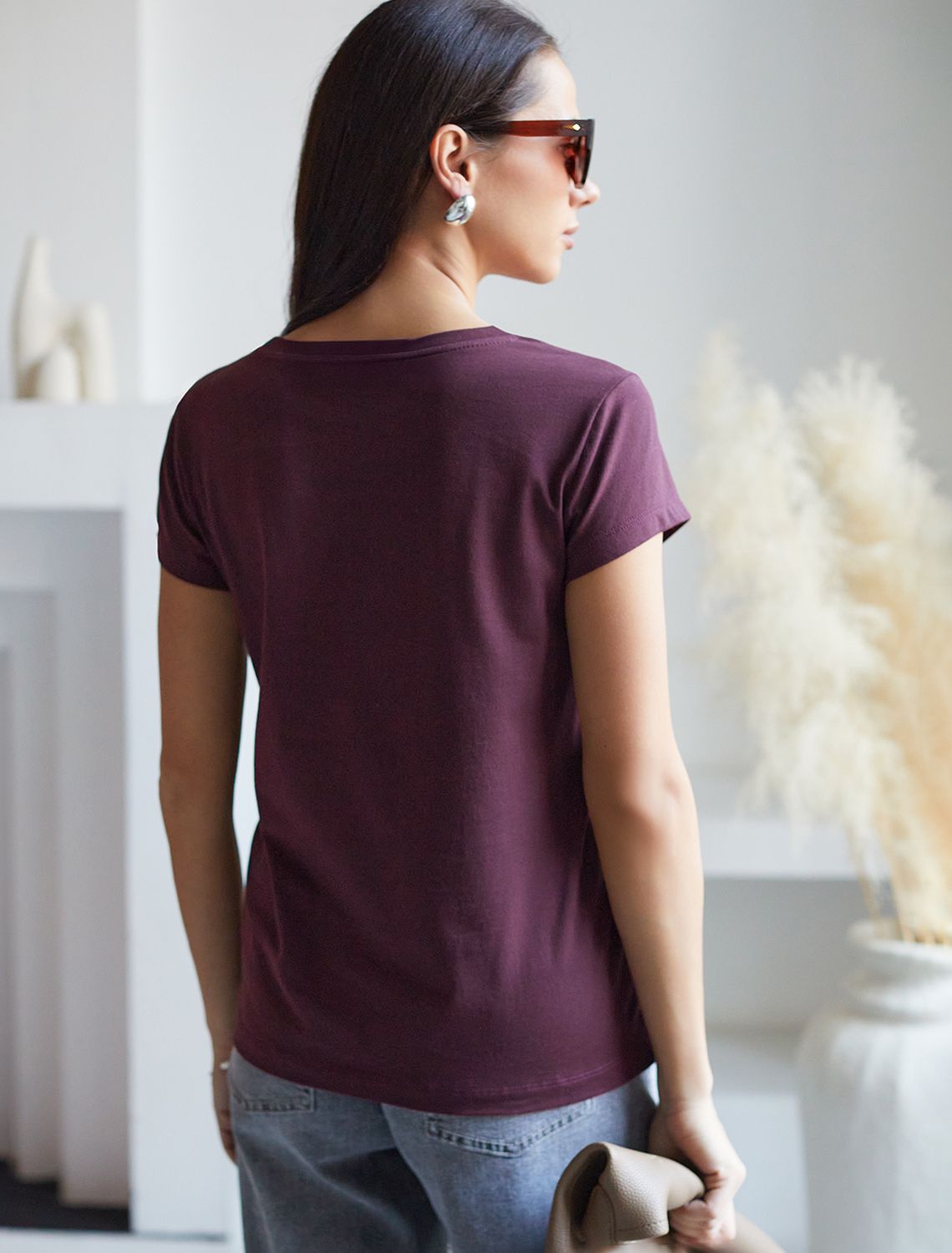 Футболка цвета бургунди идеально подходит для вечеринки и создания яркого образа. Оригинальный принт из фольги серебристого цвета придает изделию шикарный вид, который привлечет внимание на любом мероприятии. . Модель с круглым вырезом и классическим коротким рукавом обеспечивает свободу движений и комфорт в носке. Такой фасон изделия подходит на большие размеры, гармонично сидит на фигуре и помогает создать легкий акцент на достоинствах. Аккуратный круглый вырез красиво подчеркивает шею и делает образ элегантным, сохраняя актуальность для разных случаев — от рабочих встреч до вечерних прогулок и праздничных мероприятий.