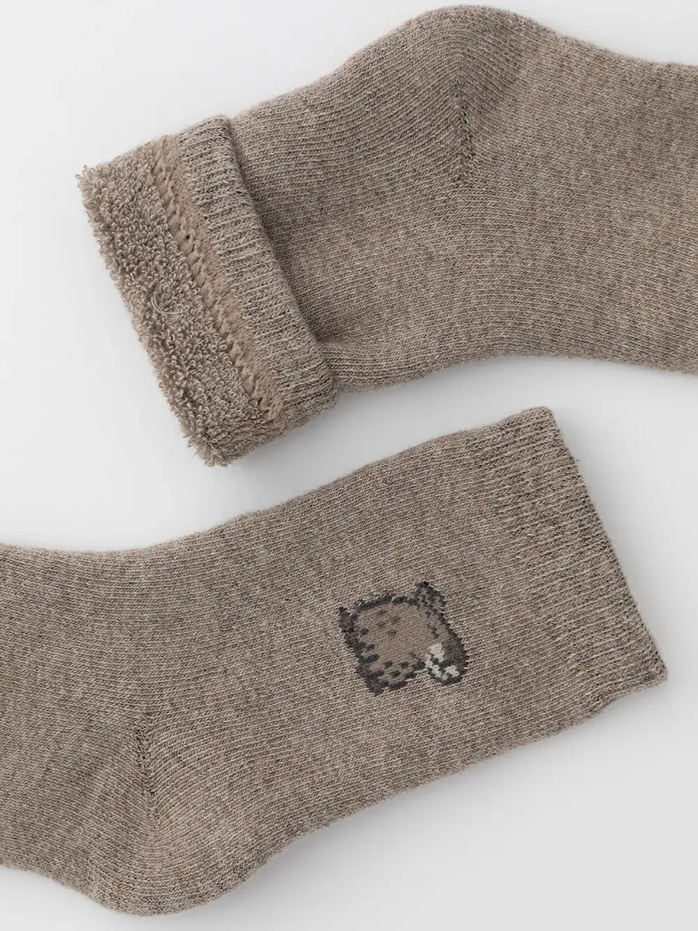 Носки махровые с формованной пяткой и эластичной резинкой по краю. Украшены рисунком. Изделие сохраняет форму и стойкий цвет после многочисленных стирок.