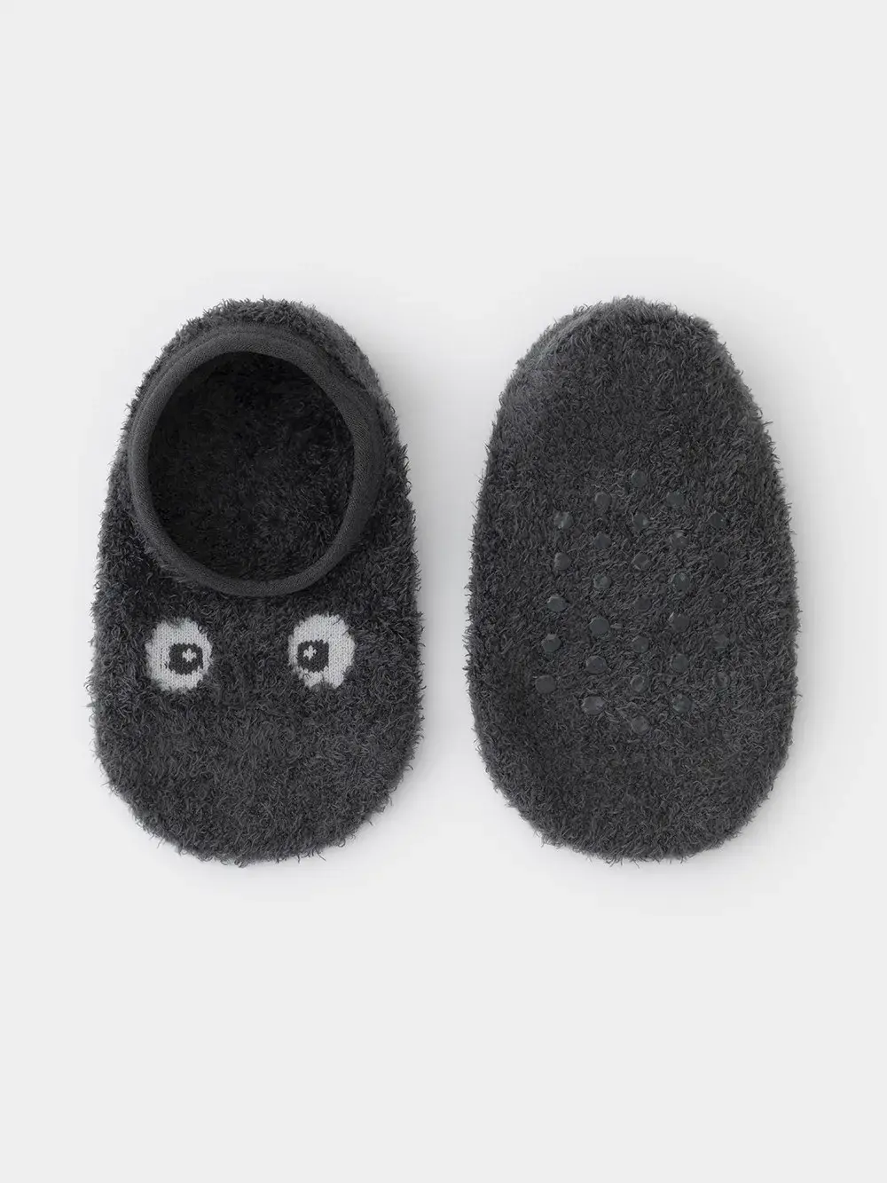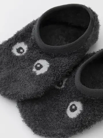 Тёплые следки для мальчика с формованной пяткой и эластичной резинкой по краю. На подошве резиновые стопперы. Украшены пушистым рисунком. Изделие сохраняет форму и стойкий цвет после многочисленных стирок.