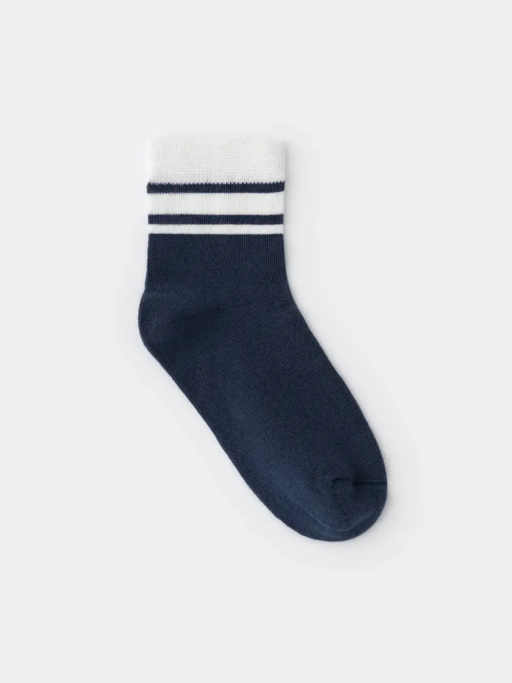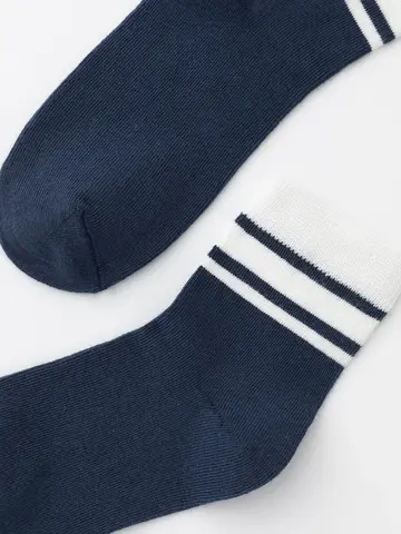 Носки длинные детские с формованной пяткой и эластичной резинкой по краю. Украшены рисунком в полоску. Изделие сохраняет форму и стойкий цвет после многочисленных стирок.
