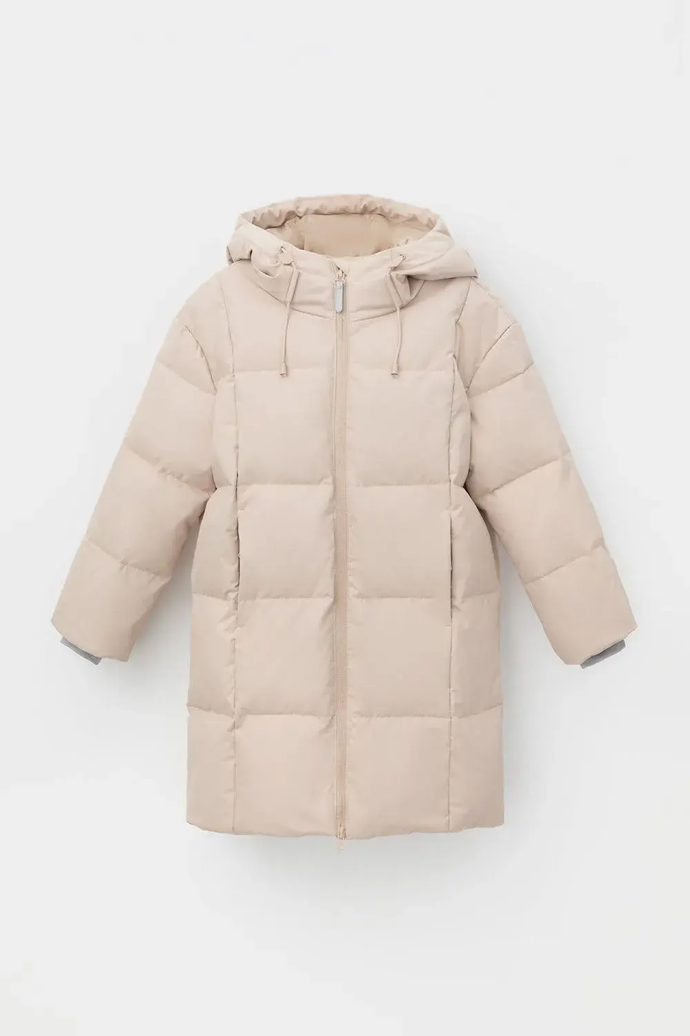 Пальто для девочки с натуральным утеплителем из гипоаллергенного гусиного пуха (70%) и пера (30%). Рекомендованный температурный режим - от -5° до -30°.