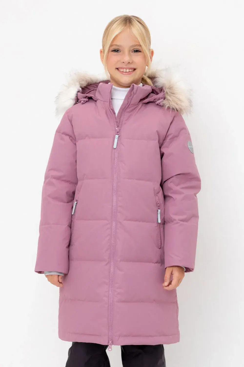 Пальто для девочки с натуральным утеплителем из гипоаллергенного гусиного пуха (70%) и пера (30%). • Мембранная ткань 1000/1000 покрыта тефлоновой пропиткой, отталкивающей воду и грязь, обладает "дышащими" свойствами и гарантирует идеальный воздухообмен. • Двойной пух-пакет удерживает утеплитель без повреждения ткани. Для утеплителя используется очищенный гусиный пух российского производства. ОСОБЕННОСТИ: • Несъемный капюшон • Cъемная опушка (на молнии) из искусственного меха на капюшоне • Эластичная утяжка со стоппером на капюшоне • Мягкий подклад на воротнике и в верхней части внутренней планки • Внутренняя ветрозащитная планка • Дополнительные внутренние эластичные манжеты • Внутренняя утягивающая кулиска по талии • Двухзамковая молния • 2 кармана на молнии • Светоотражающие элементы • Внутренняя размерная этикетка с местом для имени.