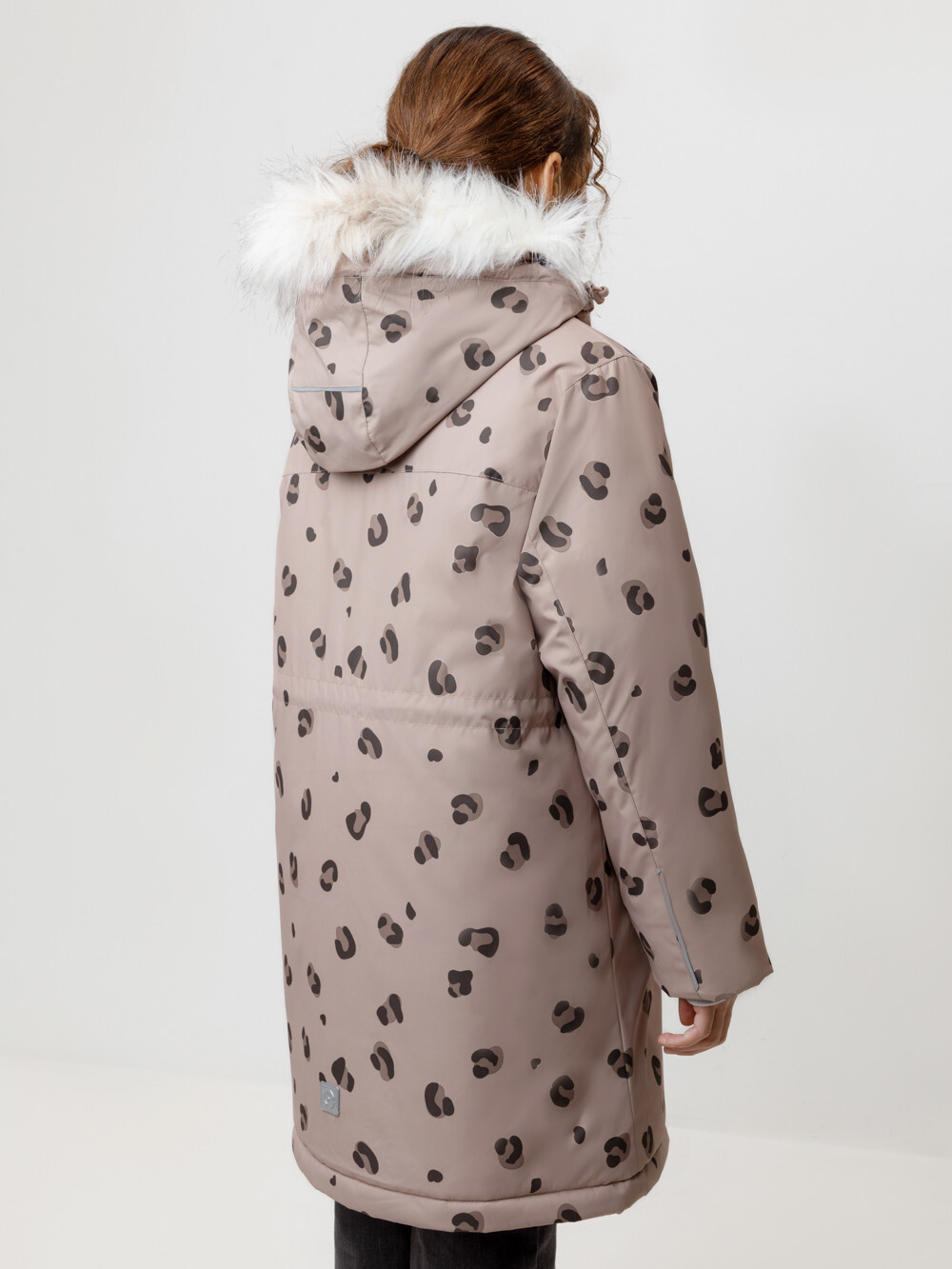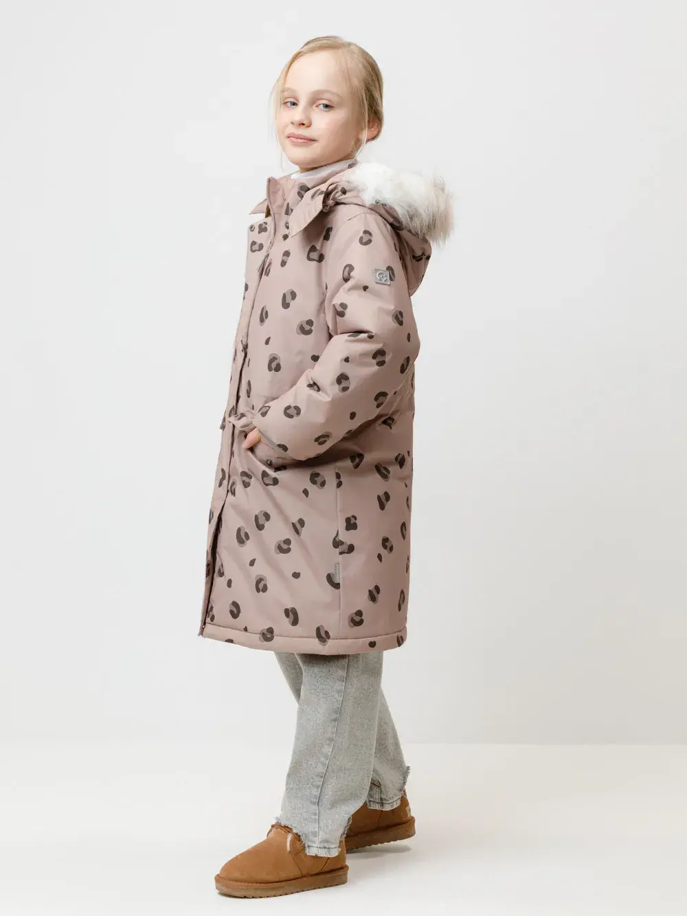 Зимнее пальто для девочки с утеплителем SEE®: 300 г/м2. Выполнено из мембранной ткани с дополнительной тефлоновой обработкой, которая предохраняет изделие от загрязнений и отталкивает влагу. Подклад выполнен из 100% полиэстера Tricot. Пальто застёгивается на молнию, предусмотрена защита подбородка. Съёмный капюшон на кнопках и липучках имеет отстёгивающийся искусственный мех. На рукавах мягкие манжеты. По бокам два кармана с клапанами, внутри карман на молнии. По талии эластичная утяжка со стопперами для регулировки ширины пальто. Во всех изделиях верхнего ассортимента для безопасности ребёнка предусмотрены светоотражающие элементы.