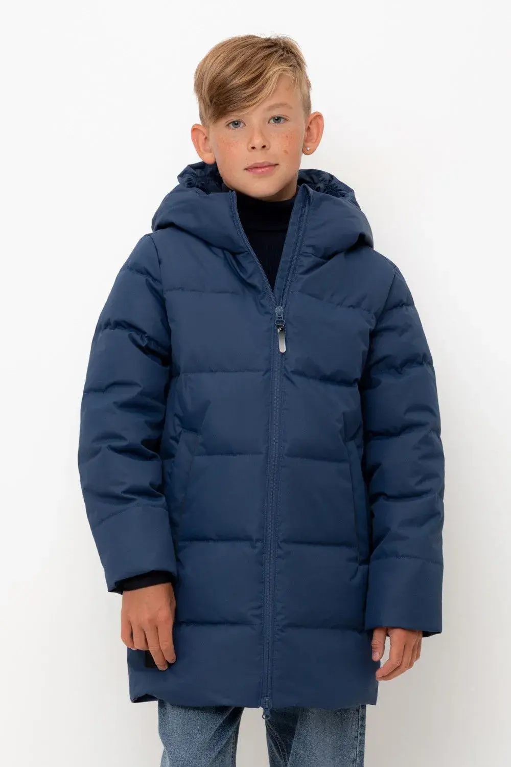 Пальто для мальчика с натуральным утеплителем из гипоаллергенного гусиного пуха (70%) и пера (30%). Рекомендованный температурный режим - от -5° до -30°.