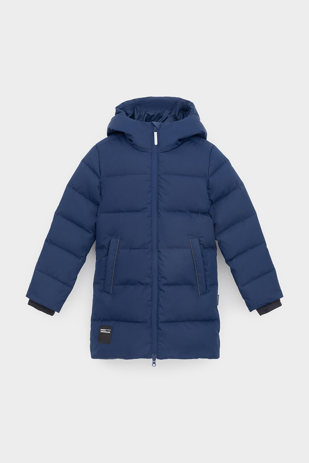 Пальто для мальчика с натуральным утеплителем из гипоаллергенного гусиного пуха (70%) и пера (30%). • Мембранная ткань 1000/1000 покрыта тефлоновой пропиткой, отталкивающей воду и грязь, обладает "дышащими" свойствами и гарантирует идеальный воздухообмен. • Двойной пух-пакет удерживают утеплитель без повреждения ткани. Для утеплителя используется очищенный гусиный пух российского производства. • Несъемный капюшон • Эластичная резинка по бокам капюшона • Мягкий подклад • Внутреняя ветрозащитная планка • Дополнительные внутренние эластичные манжеты • 2 кармана на молнии + 1 внутренний нагрудный карман • Двухзамковая молния • Светоотражающие элементы • Внутренняя размерная этикетка с местом для имени