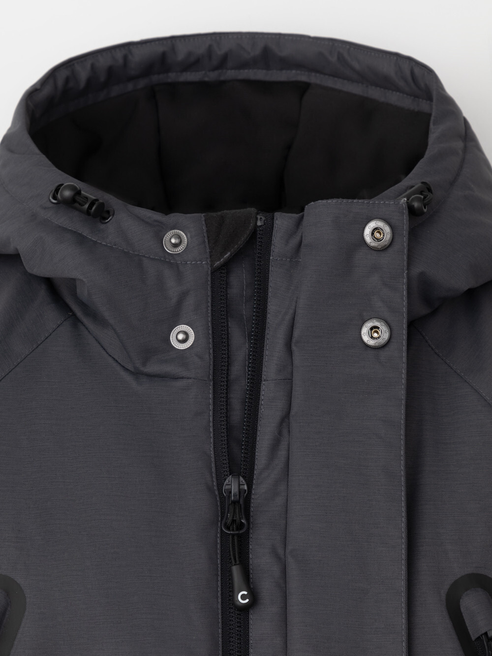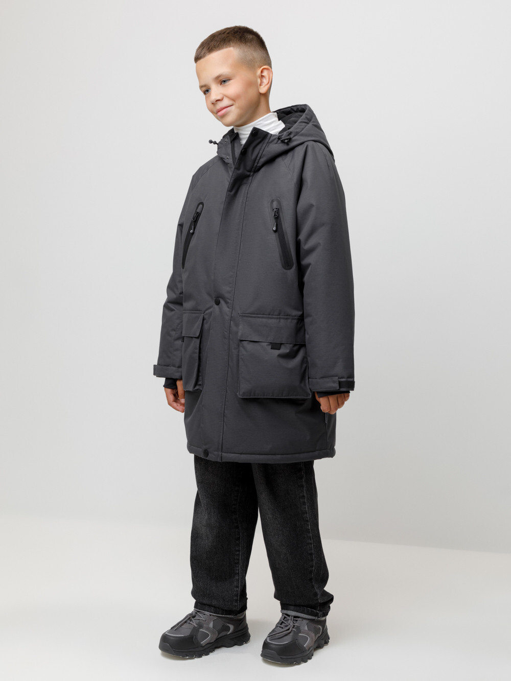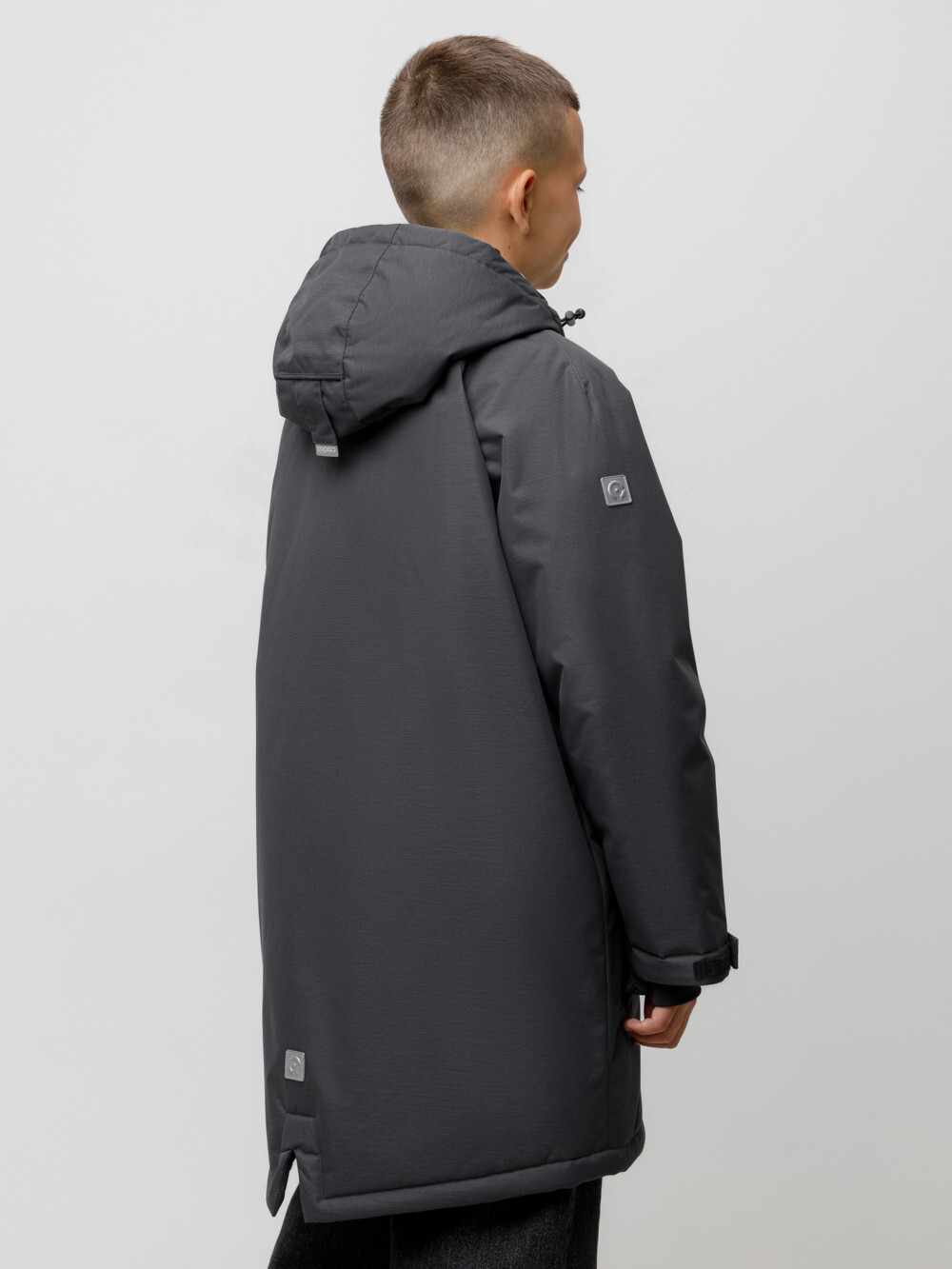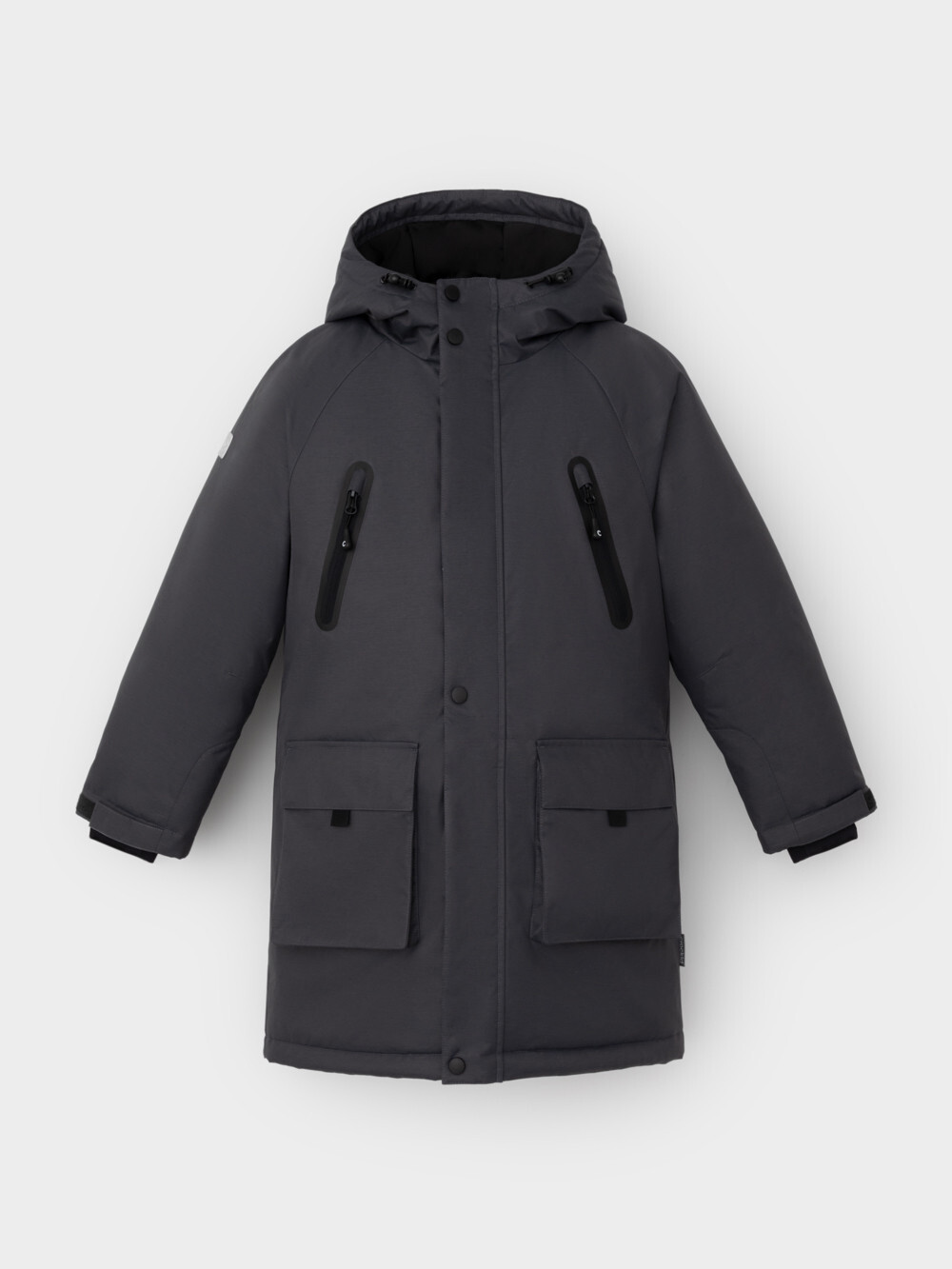 Зимняя парка для мальчика с утеплителем Fellex®: 250 г/м2. Выполнена из мембранной ткани с дополнительной тефлоновой обработкой, которая предохраняет изделие от загрязнений и отталкивает влагу. Подклад выполнен из 100% полиэстера Tricot. Парка застёгивается на молнию и внешнюю планку с кнопками, предусмотрена защита подбородка. Вшитый капюшон затягивается на эластичную утяжку со стопперами и на шнур. На рукавах внутренние эластичные манжеты, ширина регулируется липучками. Два накладных кармана с клапанами по бокам и два кармана на груди. По талии эластичная утяжка со стопперами. Во всех изделиях верхнего ассортимента для безопасности ребёнка предусмотрены светоотражающие элементы.