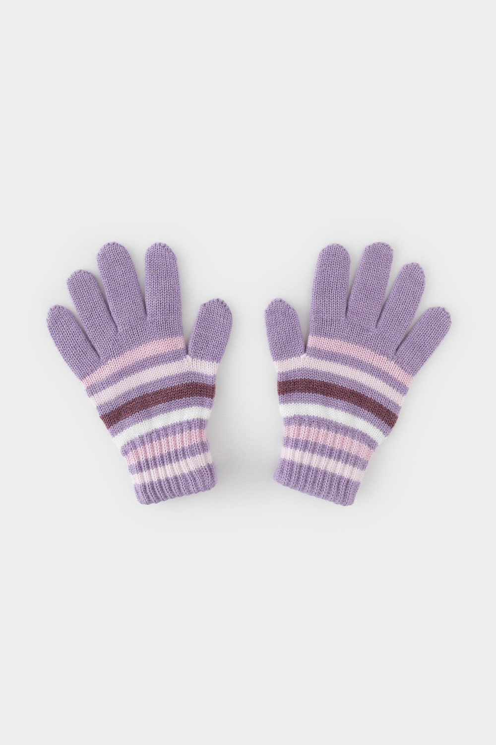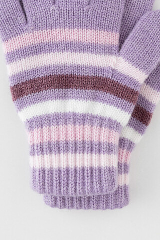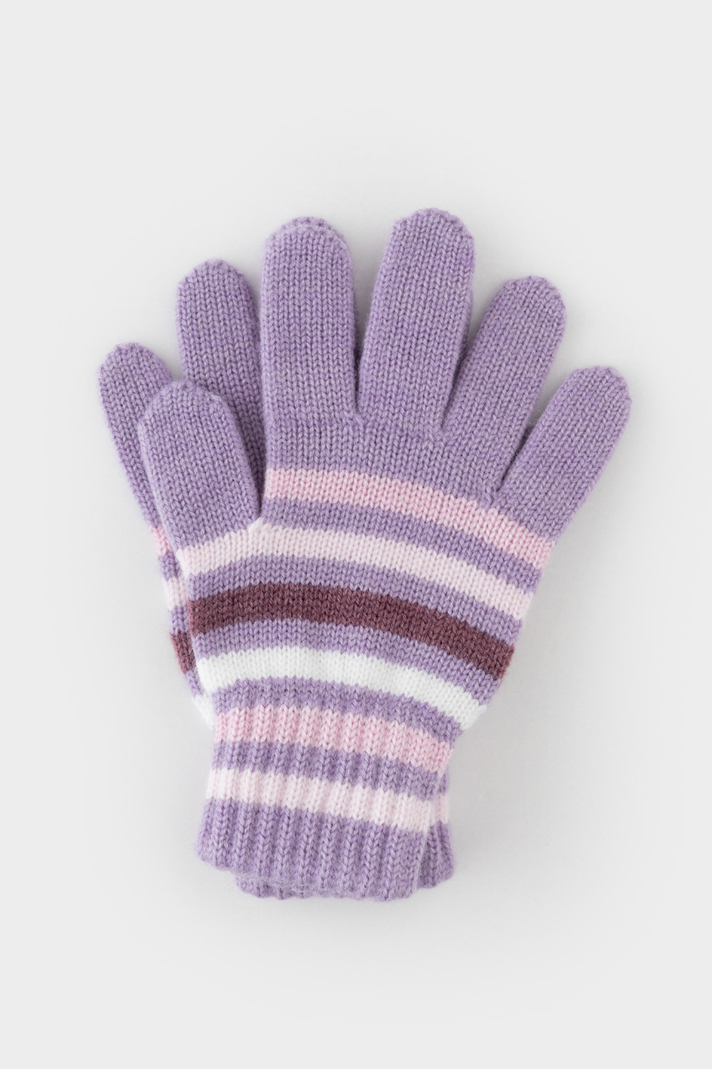 Перчатки в полоску из полушерстяной пряжи. Эластичные манжеты фиксируют перчатку на руке.