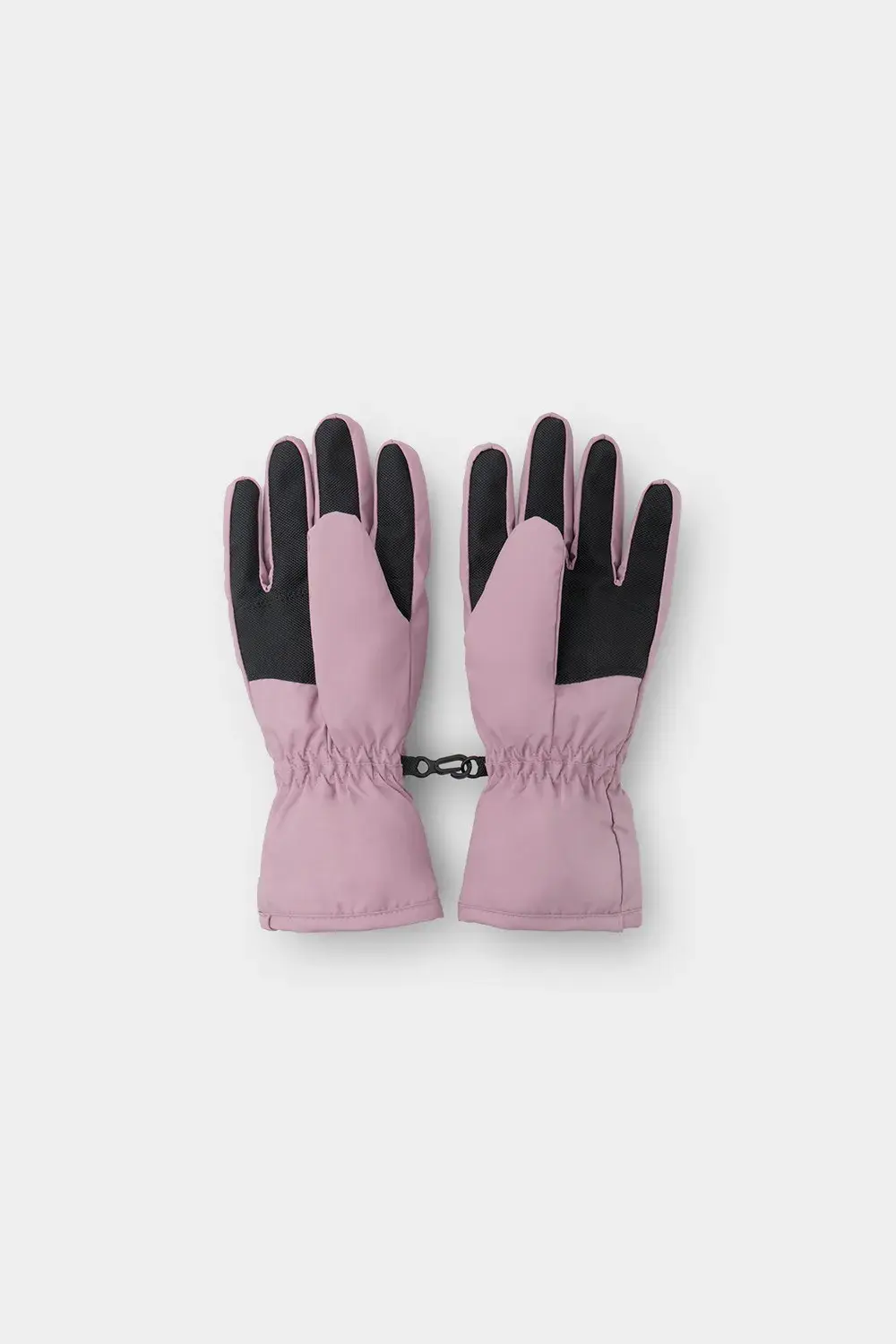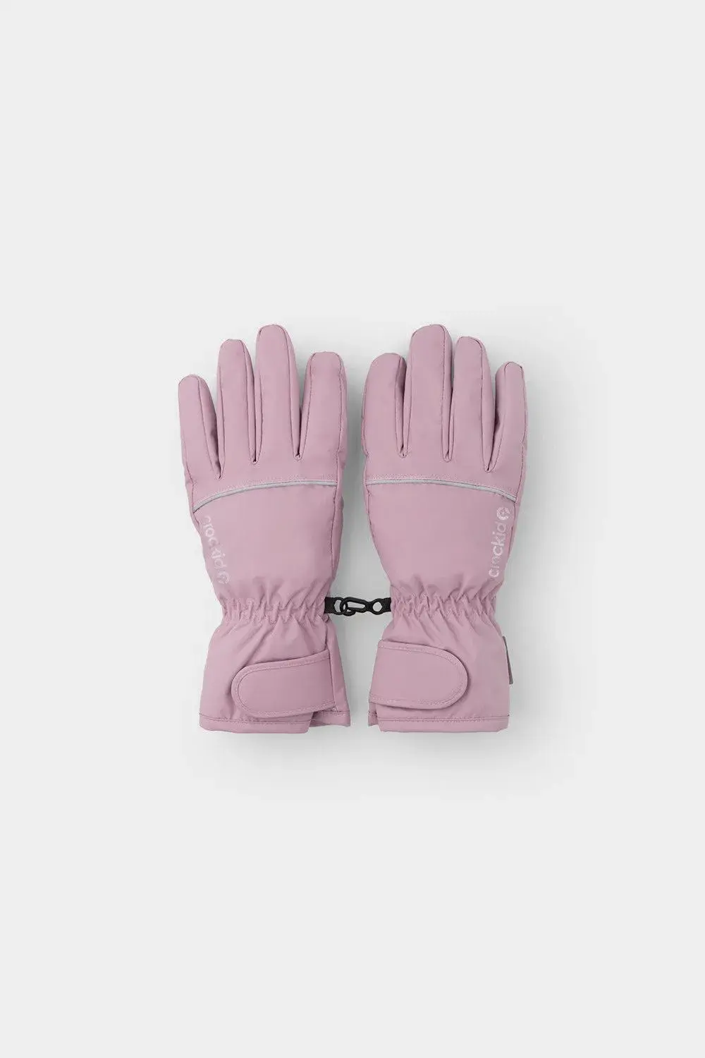 Детские утеплённые перчатки из однотонной мембранной ткани со вставками из искусственной кожи. Манжеты регулируются по ширине с помощью липучки. Мягкий подклад из флиса. Пластиковый карабин для скрепления перчаток между собой. Светоотражающие элементы.