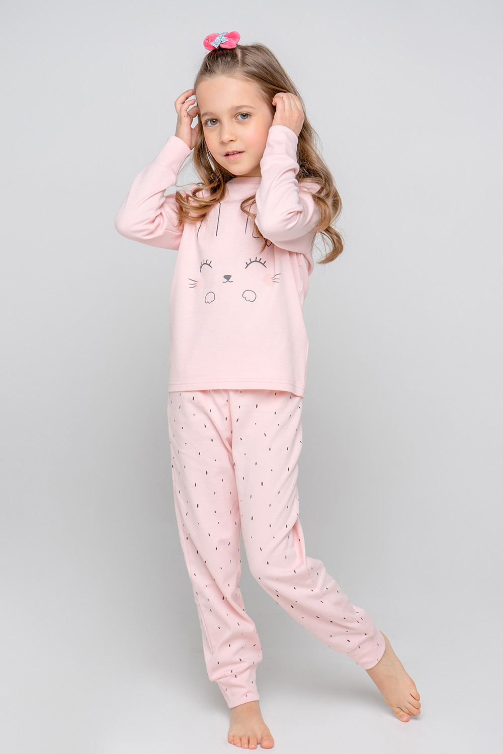 Трикотажная пижама из натурального хлопка. Джемпер с длинными втачными рукавами и брюки с эластичной резинкой в поясе. Мягкие манжеты на рукавах и по низу брюк. Оригинальная набивка и принт выполнены из стойких текстильных гипоаллергенных красителей. Изделие сохраняет цвет и форму после многократных стирок. Все трикотажные полотна производятся в соответствии с нормами швейцарского сертификата ЭкоТекс.