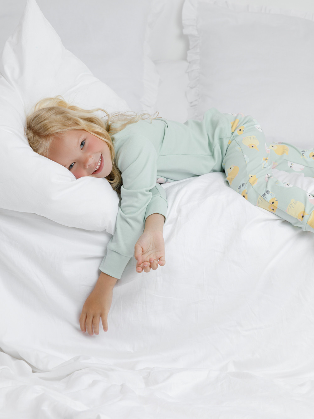 Трикотажная пижама из натурального хлопка. Джемпер с длинными втачными рукавами и брюки с эластичной резинкой в поясе. Мягкие манжеты на рукавах и по низу брюк. Оригинальная набивка и принт выполнены из стойких текстильных гипоаллергенных красителей. Изделие сохраняет цвет и форму после многократных стирок. Все трикотажные полотна производятся в соответсвии с нормами швейцарского сертификата ЭкоТекс.