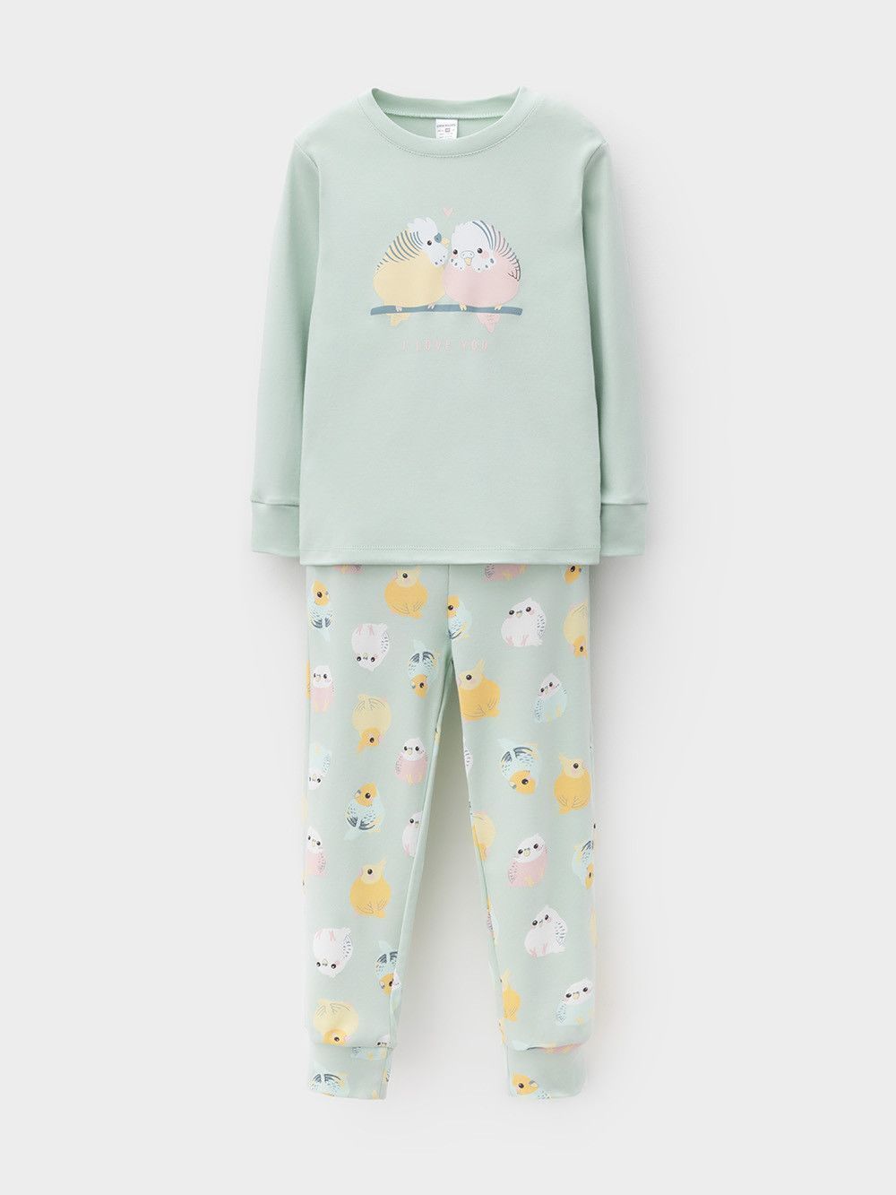 пижама для девочки К 1541/дымчатый нефрит,цв.попугайчики
