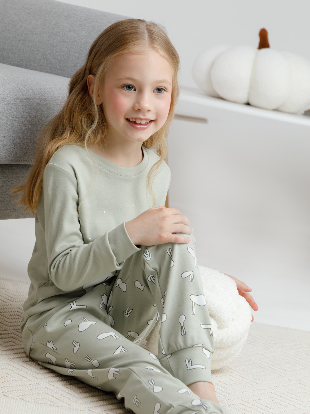 Трикотажная пижама из натурального хлопка. Джемпер с длинными втачными рукавами и брюки с эластичной резинкой в поясе. Мягкие манжеты на рукавах и по низу брюк. Оригинальная набивка и принт выполнены из стойких текстильных гипоаллергенных красителей. Изделие сохраняет цвет и форму после многократных стирок. Все трикотажные полотна производятся в соответствии с нормами швейцарского сертификата ЭкоТекс.
