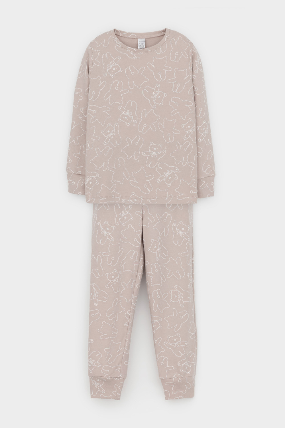 пижама для девочки К 1552/бежевый,мини плюшевые мишки