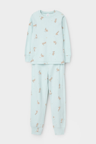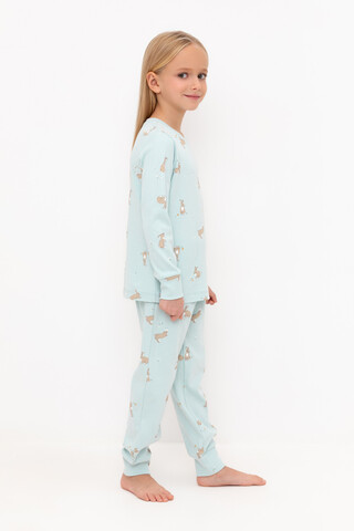 пижама для девочки К 1552/голубой опал,кролики и цветы