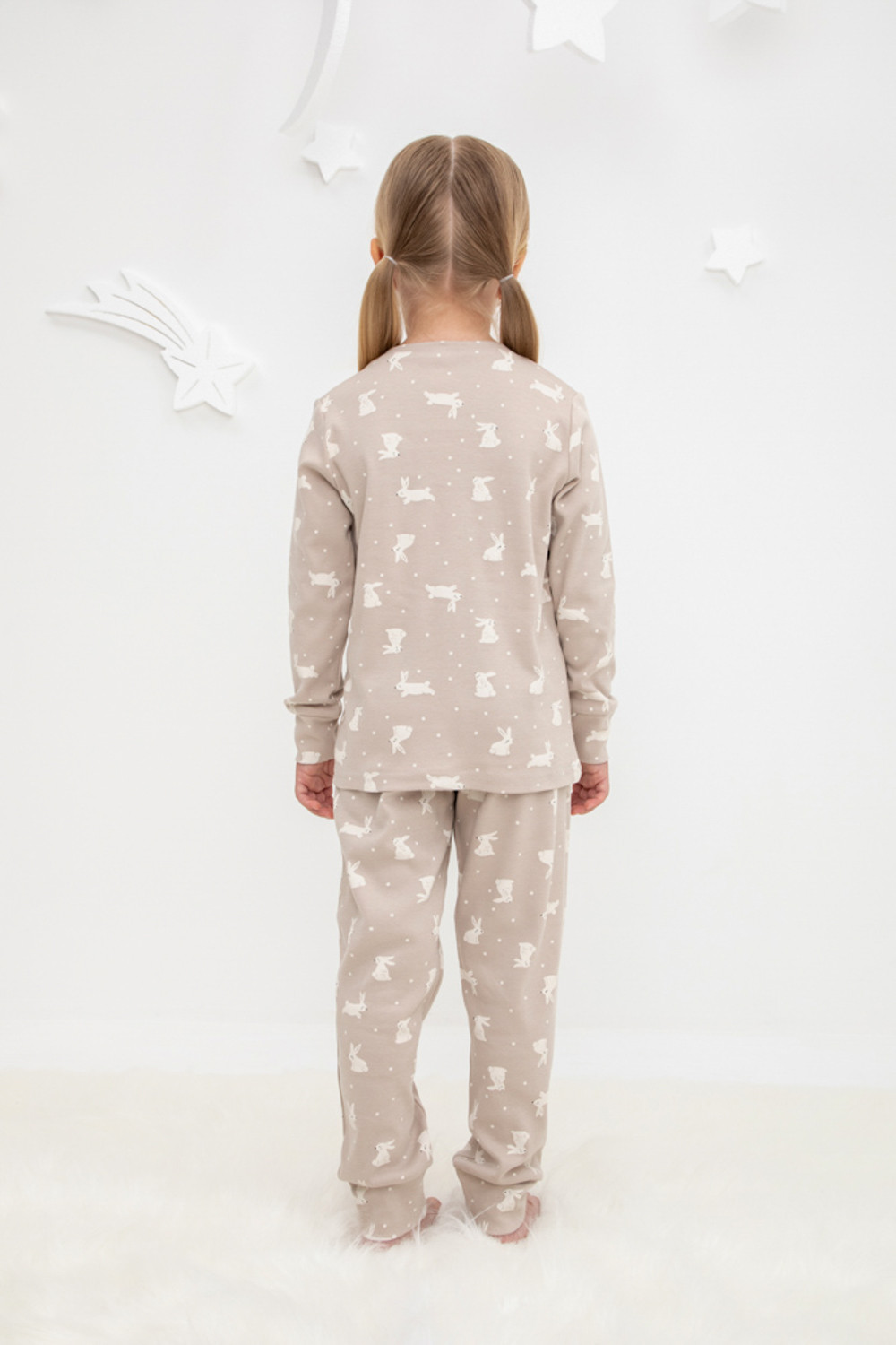 Трикотажная пижама из натурального хлопка. Джемпер с длинными втачными рукавами. У брюк в комплекте мягкий, эластичный пояс на резинке. Оригинальная набивка выполнена из стойких, гипоаллергенных текстильных красителей. Комплект сохраняет цвет и форму после многократных стирок. Все трикотажные полотна производятся в соответсвии с нормами Швейцарского сертификата ЭкоТекс.