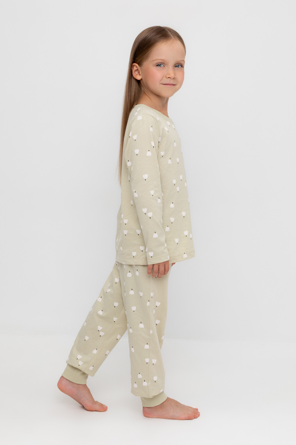 Трикотажная пижама из натурального хлопка. Джемпер с длинными втачными рукавами. У брюк в комплекте мягкий, эластичный пояс на резинке. Оригинальная набивка выполнена из стойких, гипоаллергенных текстильных красителей. Комплект сохраняет цвет и форму после многократных стирок. Все трикотажные полотна производятся в соответсвии с нормами Швейцарского сертификата ЭкоТекс.