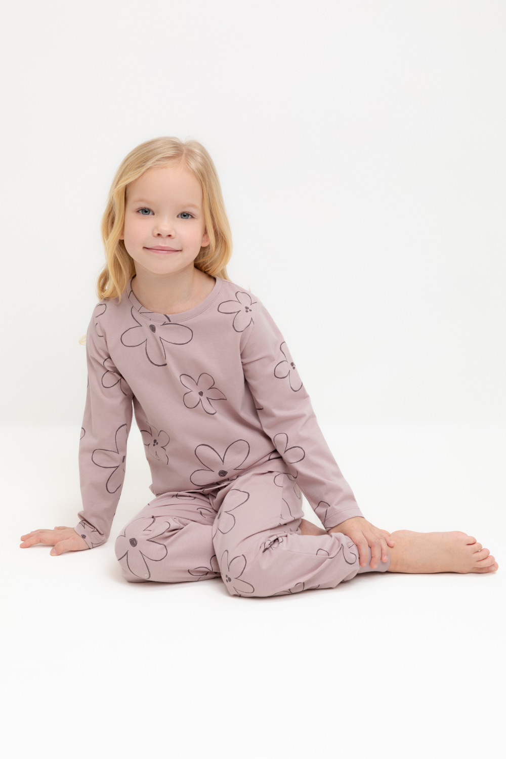 пижама для девочки К 1561/розово-сиреневый,контурные цветы