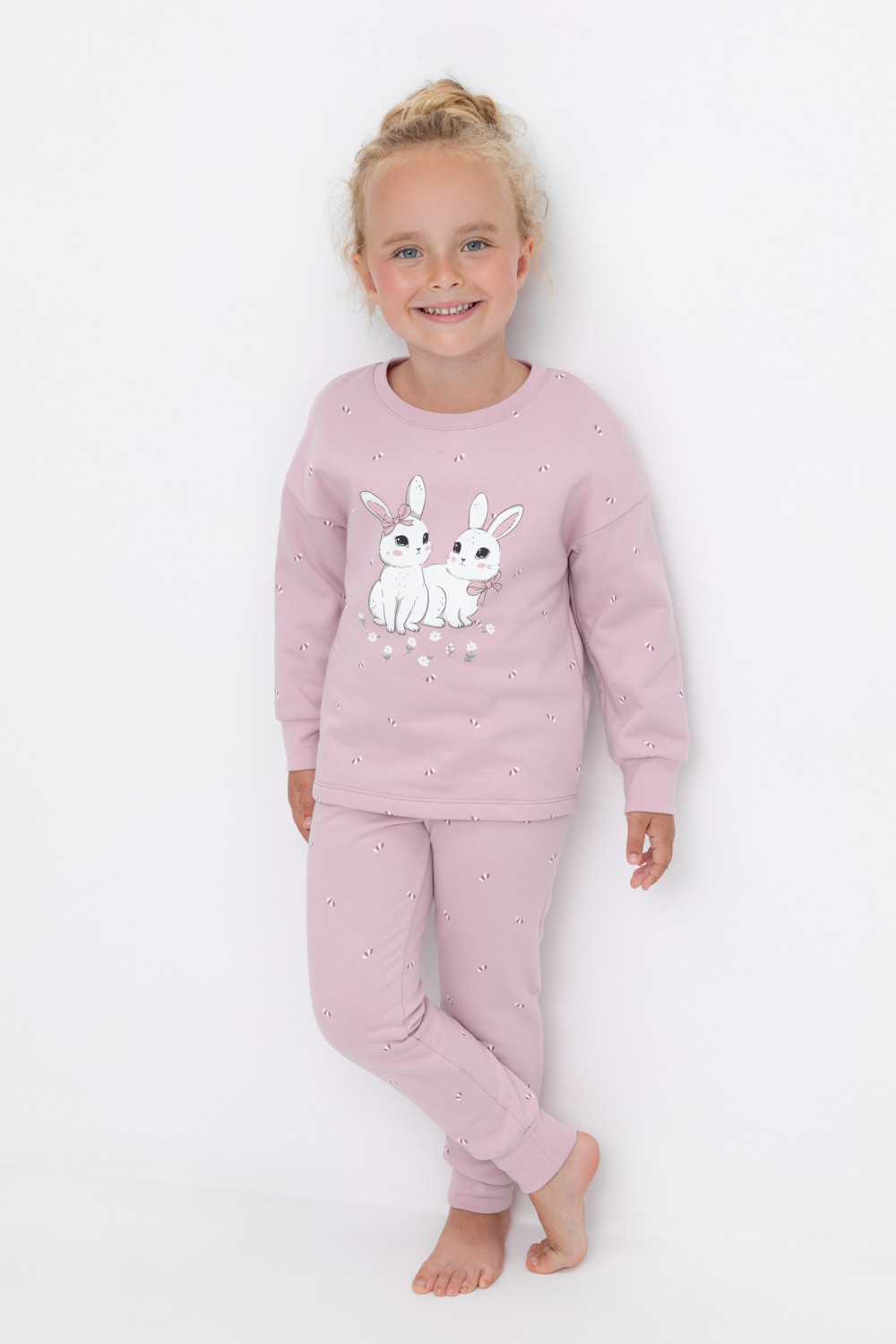 Тёплая пижама с начёсом из натурального хлопка. Джемпер с длинными спущенными рукавами и брюки с эластичной резинкой в поясе. Мягкие манжеты на рукавах и по низу брюк. Оригинальные набивка и принт выполнены из стойких гипоаллергенных текстильных красителей. Изделие сохраняет цвет и форму после многократных стирок. Все трикотажные полотна производятся в соответствии с нормами швейцарского сертификата ЭкоТекс.
