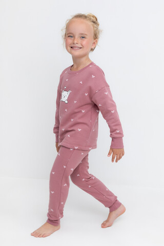 Тёплая пижама с начёсом из натурального хлопка. Джемпер с длинными спущенными рукавами и брюки с эластичной резинкой в поясе. Мягкие манжеты на рукавах и по низу брюк. Оригинальные набивка и принт выполнены из стойких гипоаллергенных текстильных красителей. Изделие сохраняет цвет и форму после многократных стирок. Все трикотажные полотна производятся в соответствии с нормами швейцарского сертификата ЭкоТекс.