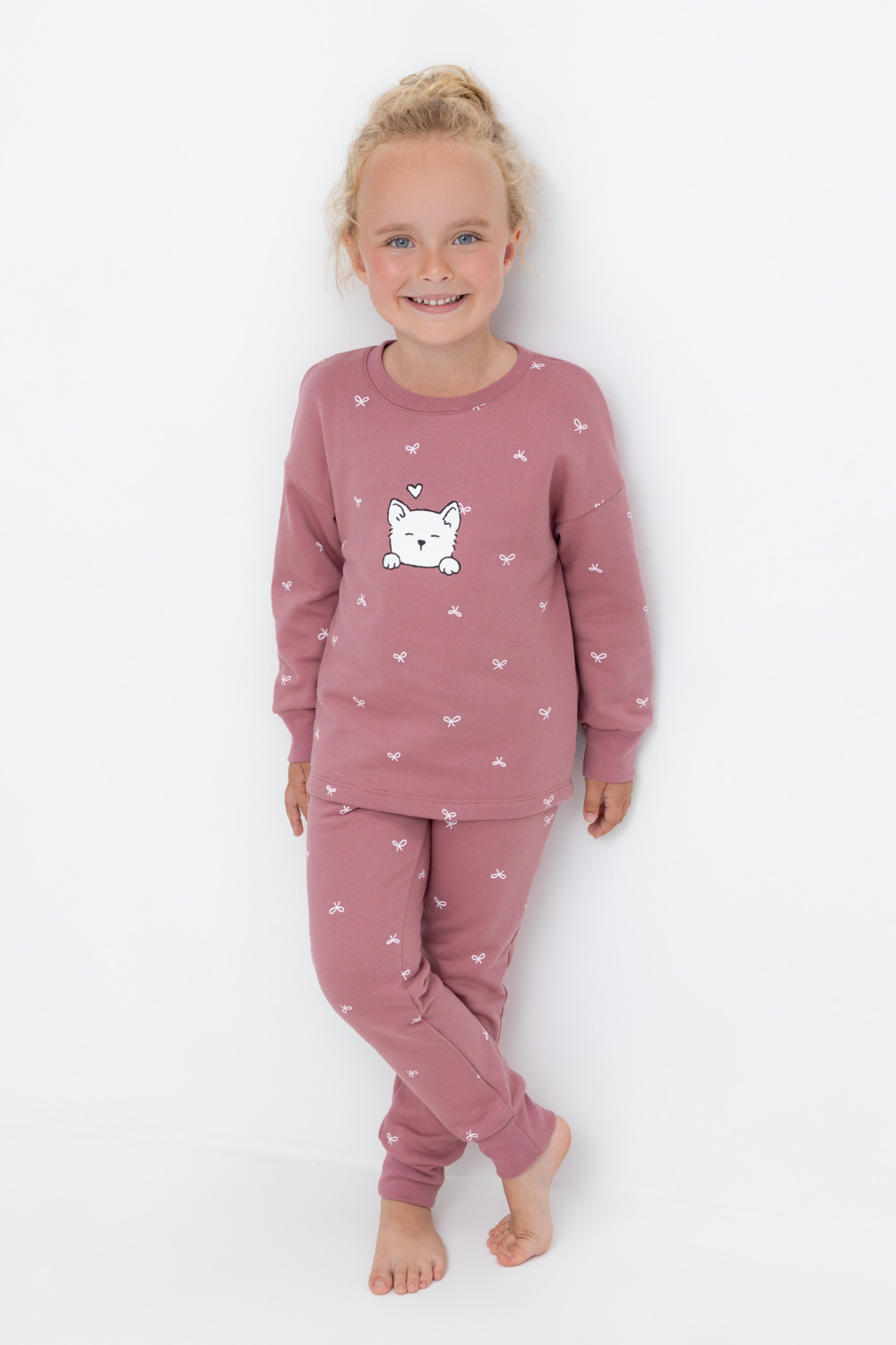 пижама для девочки К 1581/темная пудра,бантики