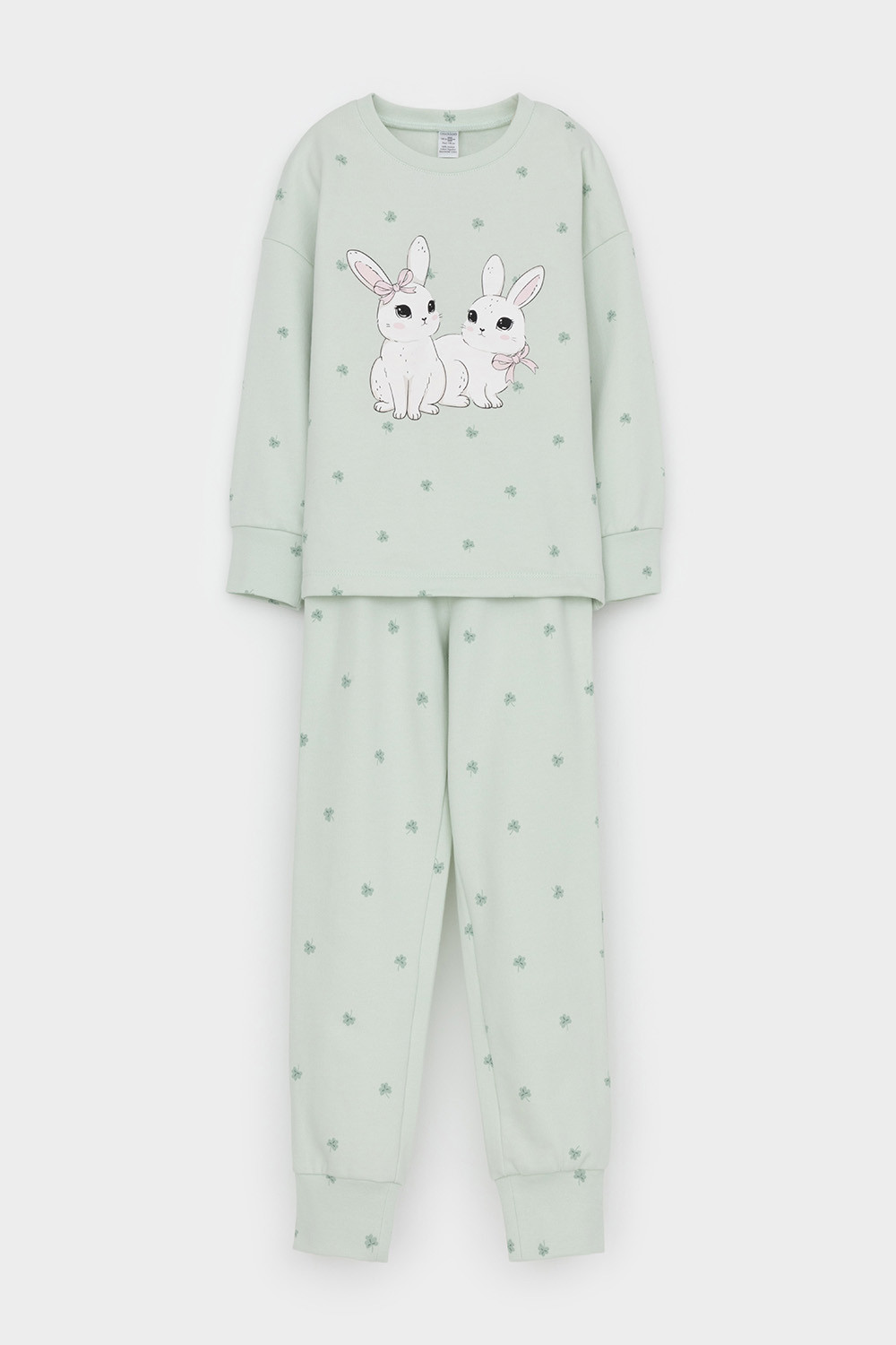 пижама для девочки К 1581/зеленая пастель,мини клевер