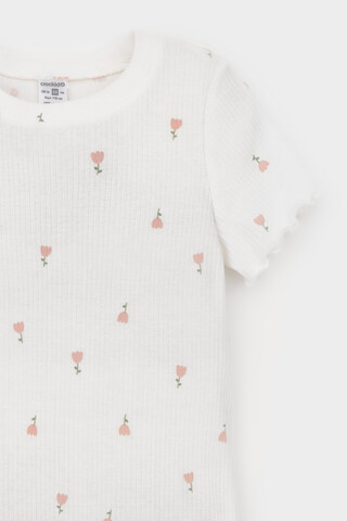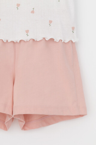 Трикотажная пижама из натурального хлопка. Футболка с короткими втачными рукавами изготовлена из эластичного трикотажа в рубчик. Шорты с эластичной резинкой в поясе выполнены из гладкого трикотажа супрем. Оригинальная набивка выполнена из стойких текстильных гипоаллергенных красителей. Изделие сохраняет цвет и форму после многократных стирок. Все трикотажные полотна производятся в соответсвии с нормами швейцарского сертификата ЭкоТекс.