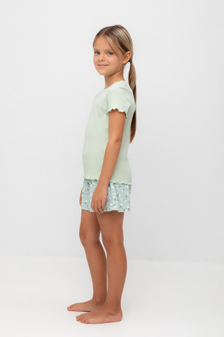 Трикотажная пижама из натурального хлопка. У футболки рукава и низ изделия обработаны микрооверлоком. У шорт в комплекте мягкий, эластичный пояс на резинке. Оригинальная набивка выполнена из стойких, гипоаллергенных текстильных красителей. Комплект сохраняет цвет и форму после многократных стирок. Все трикотажные полотна производятся в соответсвии с нормами Швейцарского сертификата ЭкоТекс.