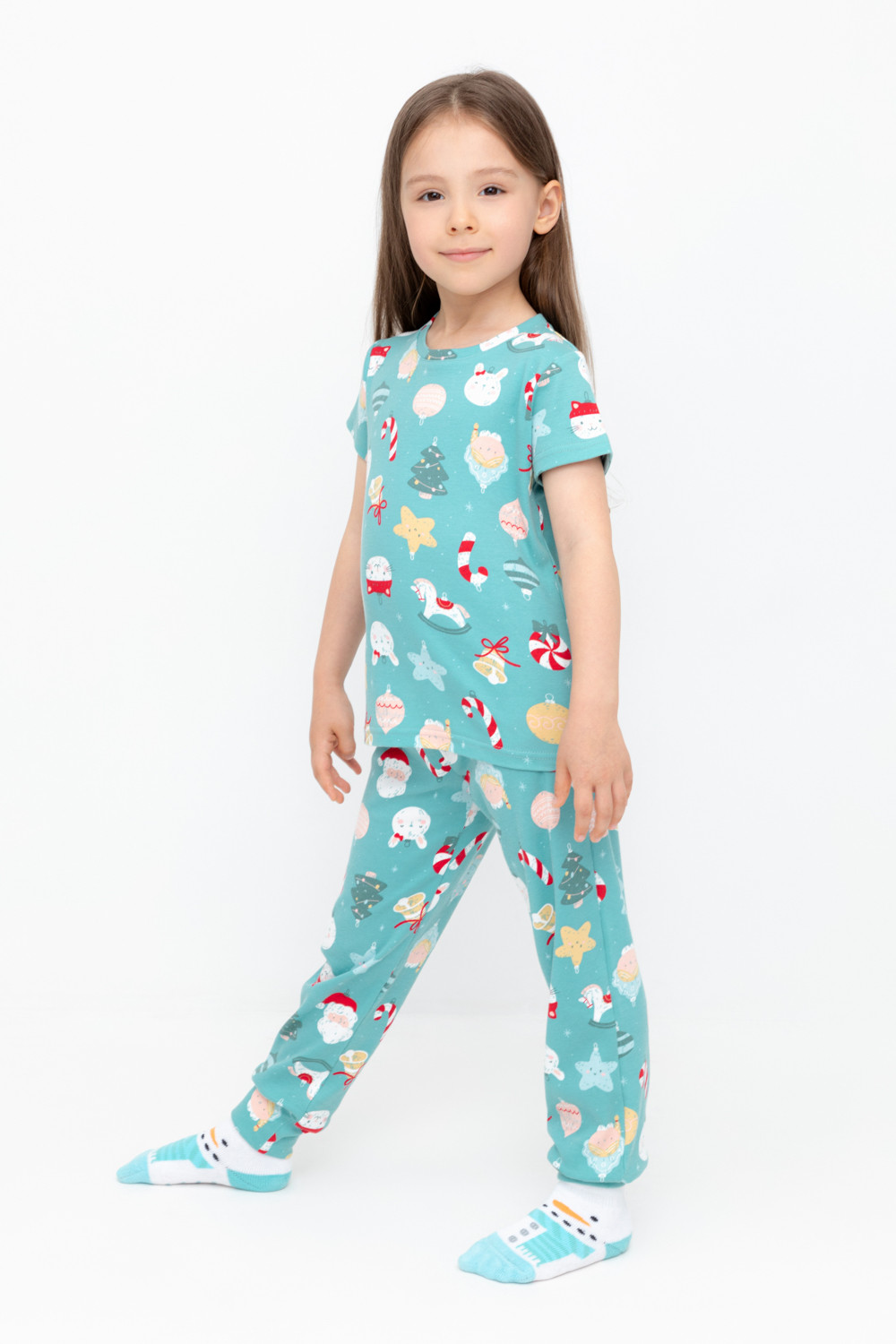 пижама для девочки К 1597/пыльная бирюза,игрушки на елку