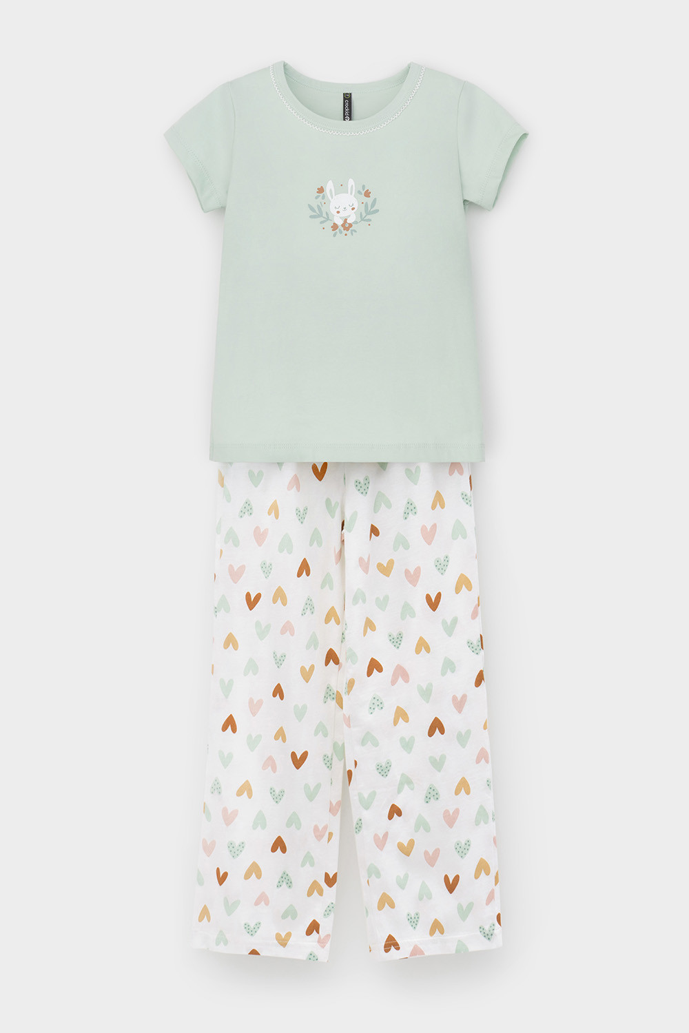 пижама для девочки К 1610/25/дымчатый нефрит,конфетти из сердечек