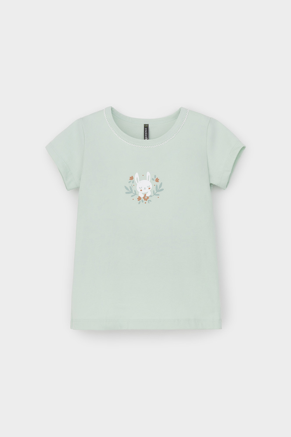 Трикотажная пижама из натурального хлопка. Футболка с короткими втачными рукавами и прямые брюки с эластичной резинкой в поясе. Оригинальные набивка и принт выполнены из стойких гипоаллергенных текстильных гипоаллергенных красителей. Изделие сохраняет цвет и форму после многократных стирок. Все трикотажные полотна производятся в соответсвии с нормами швейцарского сертификата ЭкоТекс.