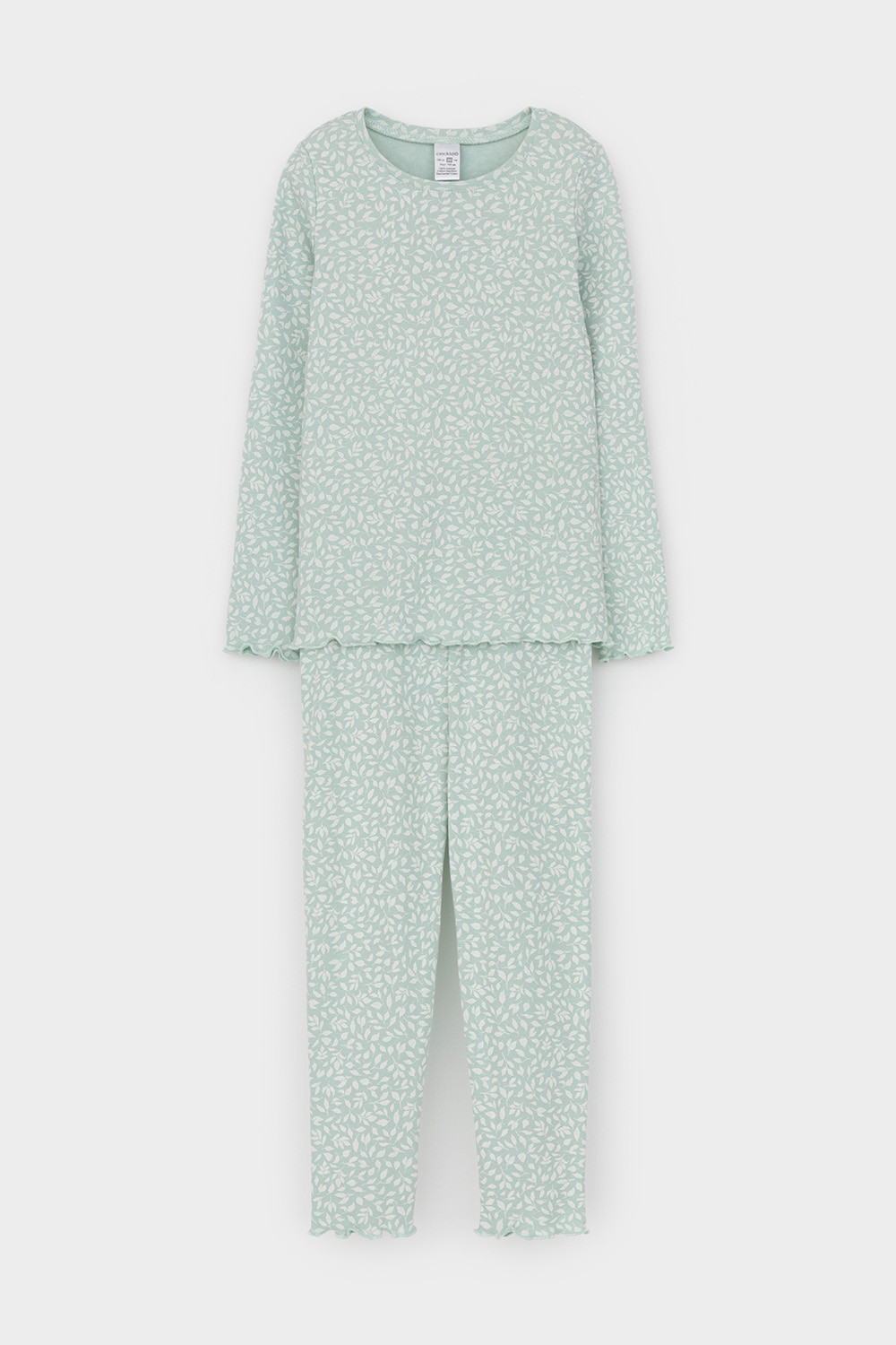 Трикотажная пижама в рубчик из натурального хлопка. Джемпер с длинными втачными рукавами и лосины с эластичной резинкой в поясе. Оригинальная набивка выполнена из стойких текстильных гипоаллергенных красителей. Изделие сохраняет цвет и форму после многократных стирок. Все трикотажные полотна производятся в соответсвии с нормами швейцарского сертификата ЭкоТекс.