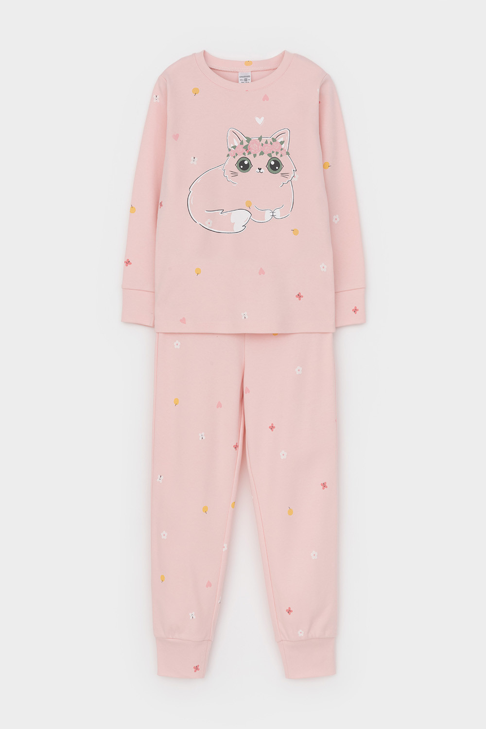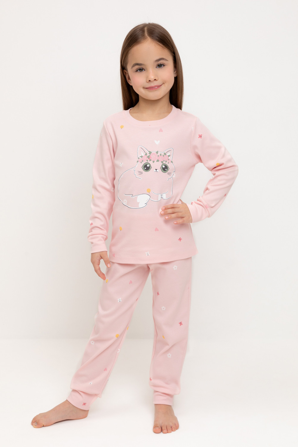 Трикотажная пижама из натурального хлопка. Джемпер с длинными втачными рукавами и брюки с эластичной резинкой в поясе. Мягкие манжеты на рукавах и по низу брюк. Оригинальная набивка и принт выполнены из стойких текстильных гипоаллергенных красителей. Изделие сохраняет цвет и форму после многократных стирок. Все трикотажные полотна производятся в соответсвии с нормами швейцарского сертификата ЭкоТекс.