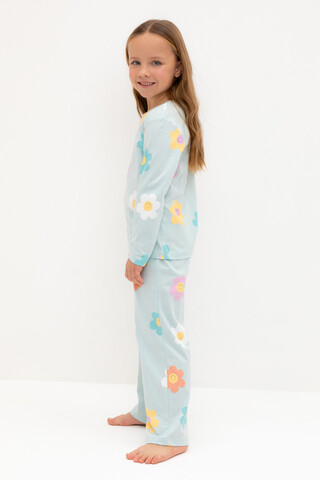 пижама для девочки К 1622/25/голубой опал,цветы