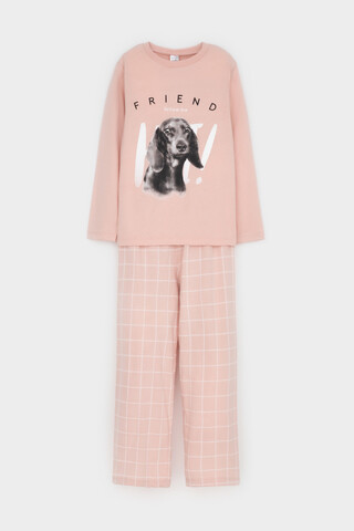 пижама для девочки К 1623/дымчатая роза,двойная клетка
